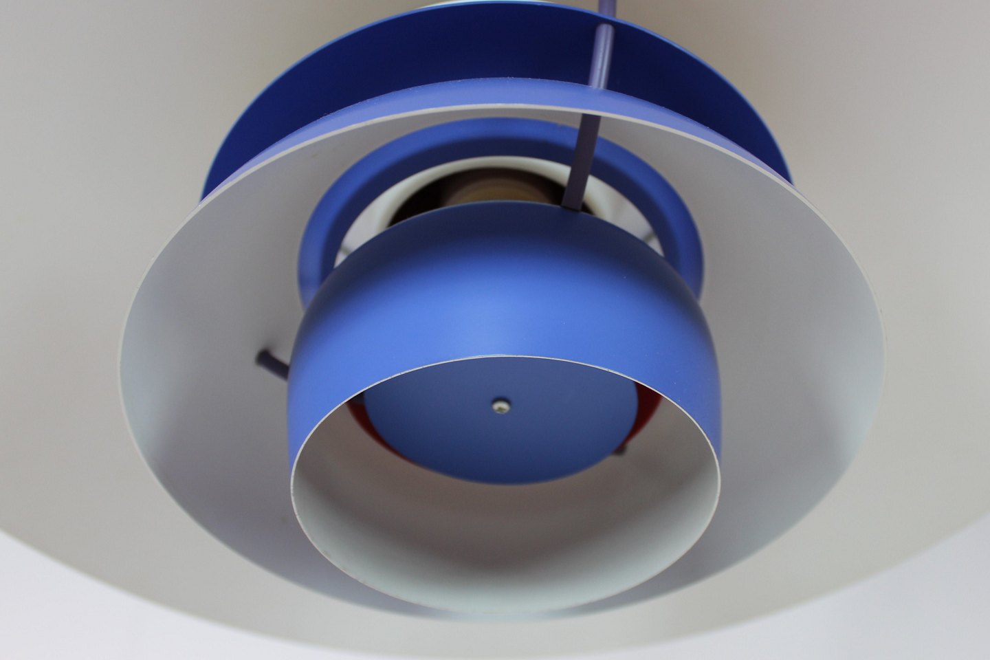 SoldPH5 pendant designed by Poul Henningsen in 1958 and manufactured by Louis Poulsen. The pendant has blue lacquered metal Shades.