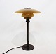PH 3/2 tablelamp with shades of amber colored glass and frame of burnished brass, designed by Poul Henningsen and manufactured by Louis Poulsen in the beginning of the 1930s. The lamp is in great vintage condition.
