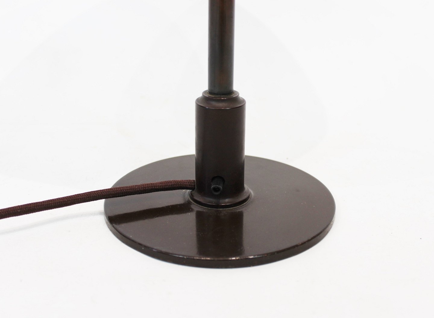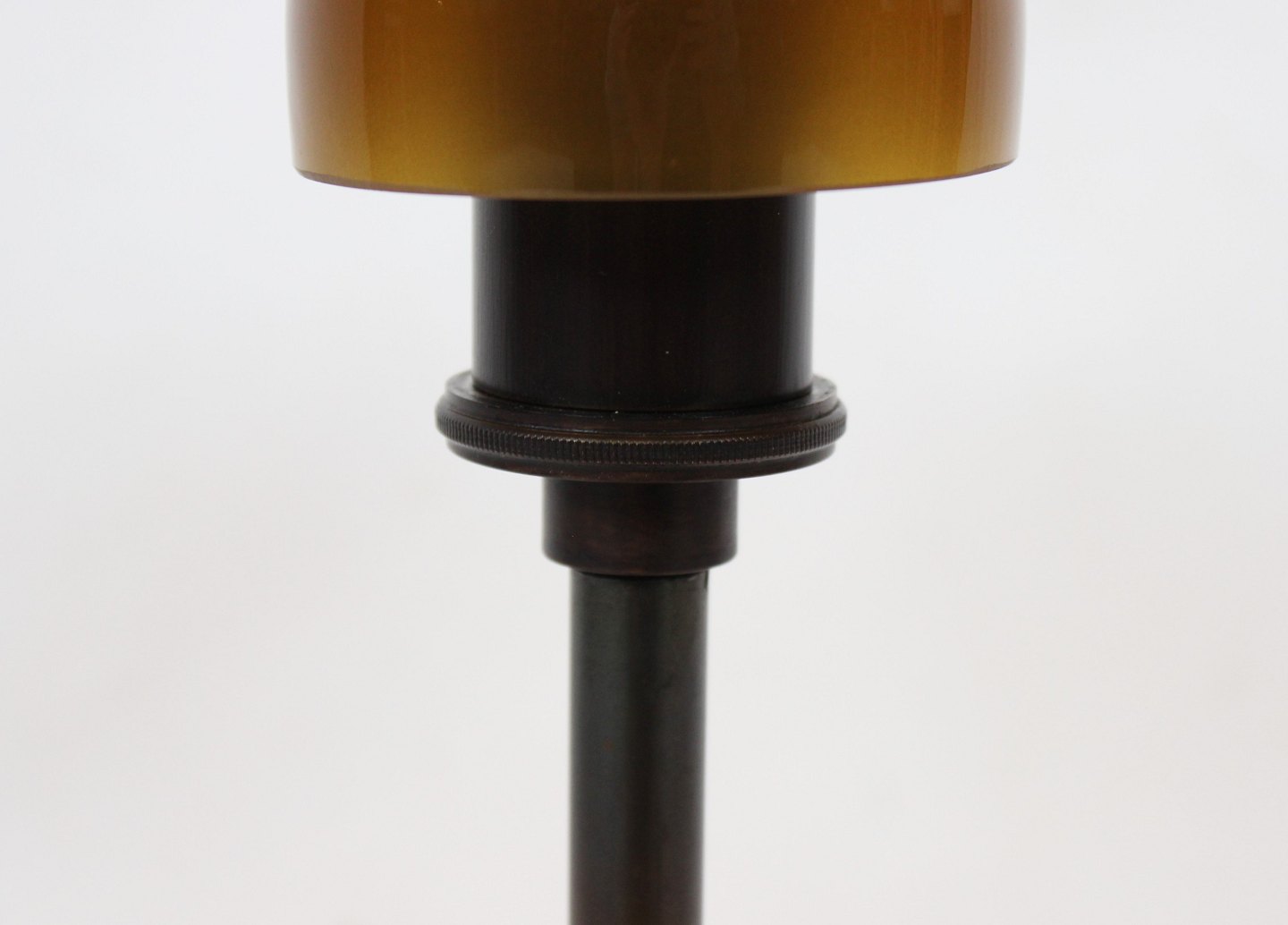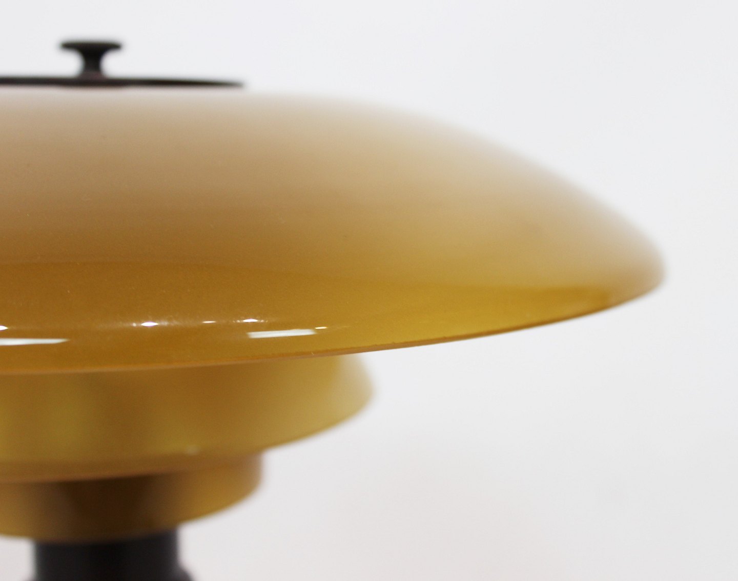 PH 3/2 tablelamp with shades of amber colored glass and frame of burnished brass, designed by Poul Henningsen and manufactured by Louis Poulsen, 1930s.
