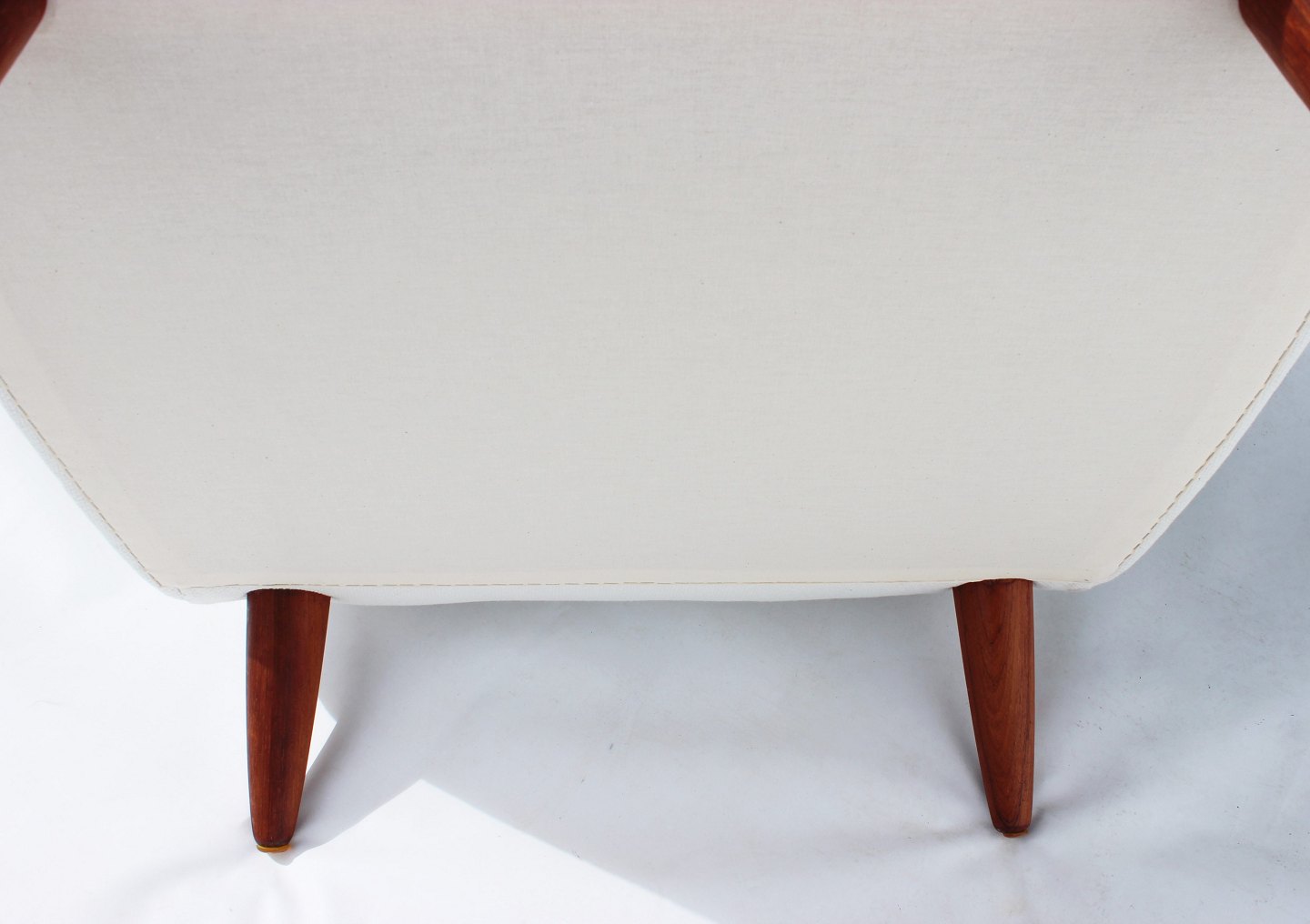 Please contact us for price informationThe armchair with a low back, upholstered in an elegant white fabric and resting on beautifully polished rosewood legs, is a masterpiece of Danish design from the 1960s. Its clean lines and organic form reflect the period aesthetics of Scandinavian furniture design.