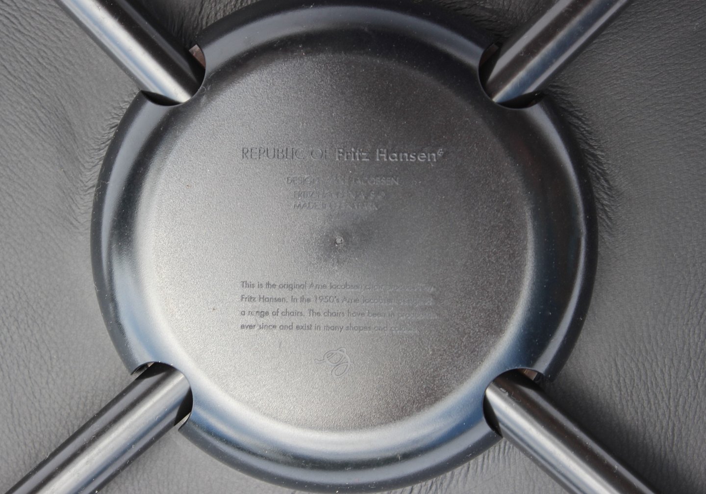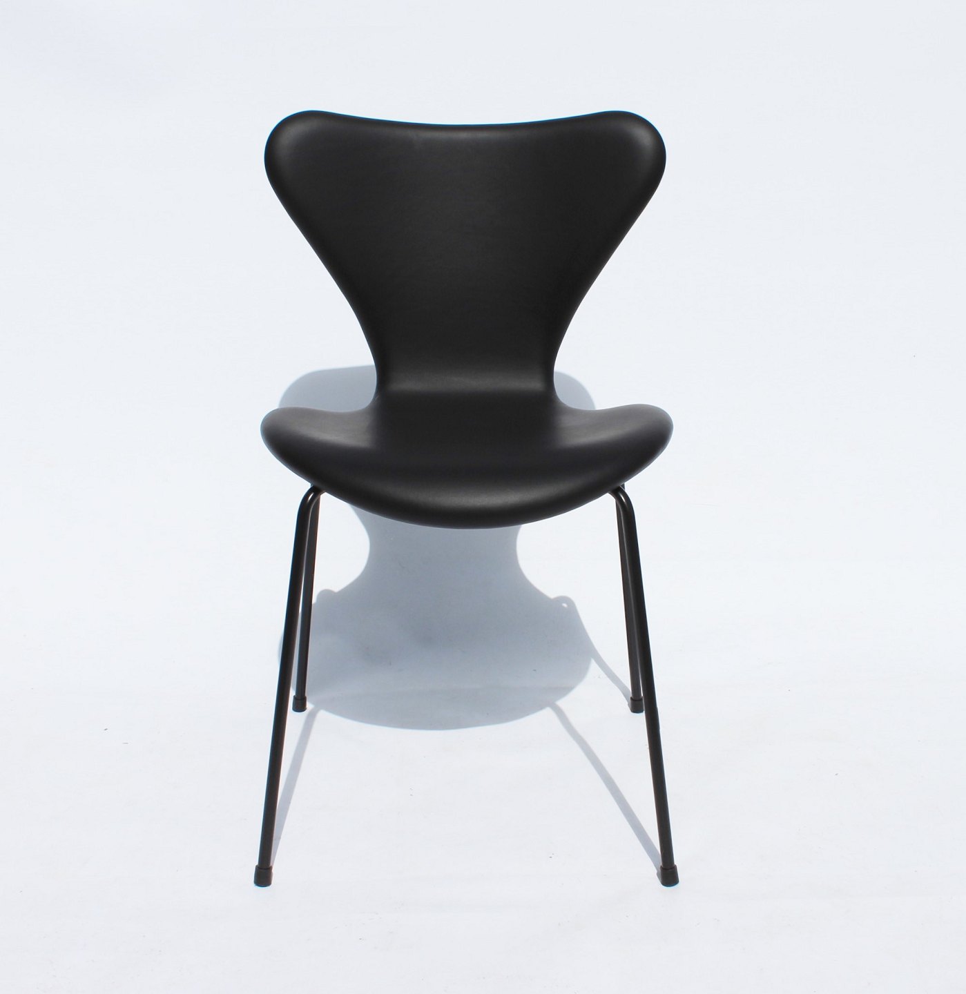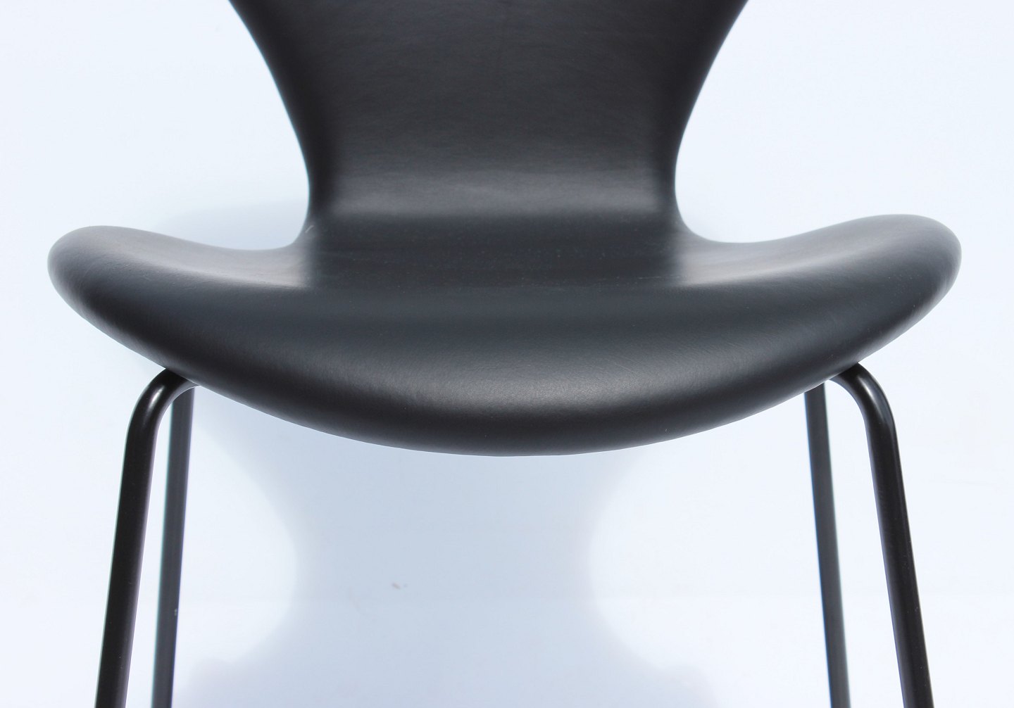 Stolene er skabt i 2016 som en specialmodel, der inkorporerer den klassiske elegance og tidløse designelementer, som Arne Jacobsen er kendt for. Den sorte læderpolstring tilføjer en sofistikeret atmosfære til sædet, mens det sorte stel giver et moderne og stilfuldt udtryk.