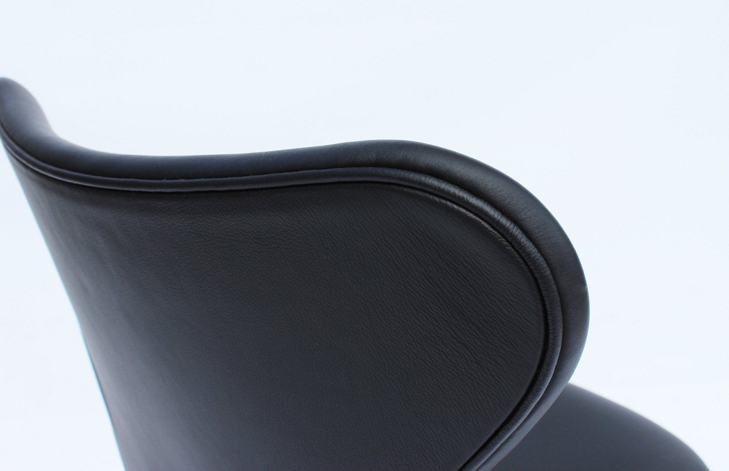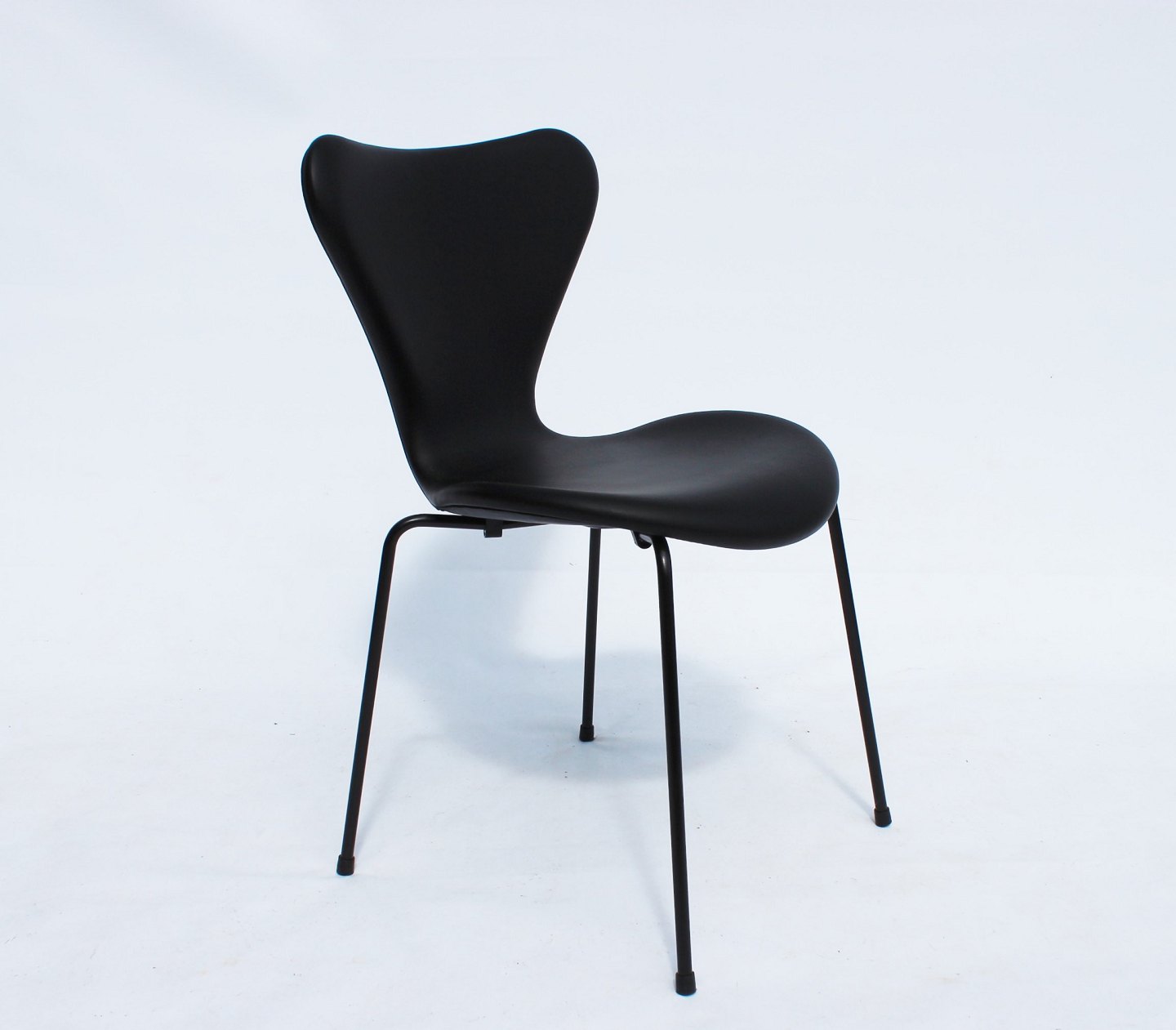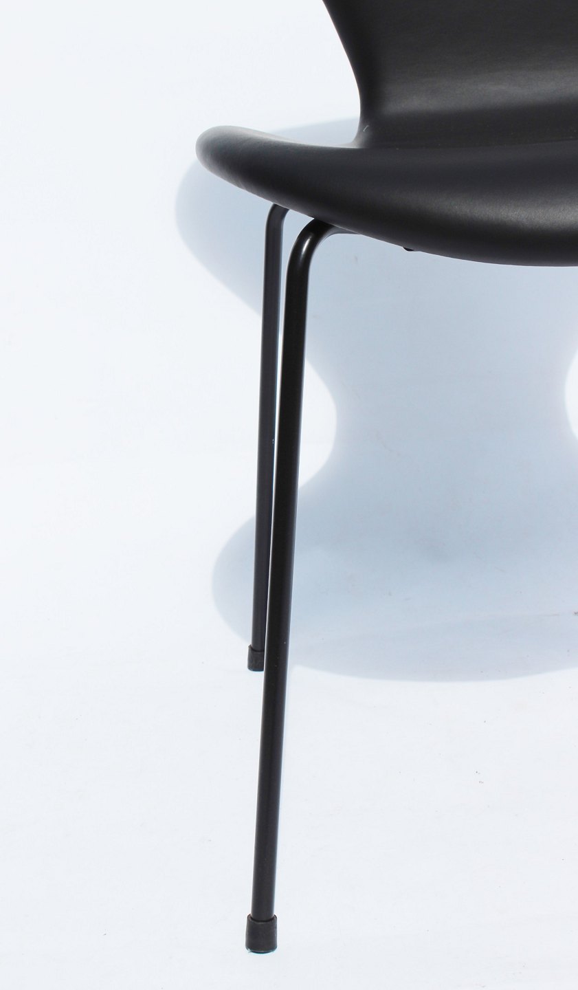 Stolene er skabt i 2016 som en specialmodel, der inkorporerer den klassiske elegance og tidløse designelementer, som Arne Jacobsen er kendt for. Den sorte læderpolstring tilføjer en sofistikeret atmosfære til sædet, mens det sorte stel giver et moderne og stilfuldt udtryk.