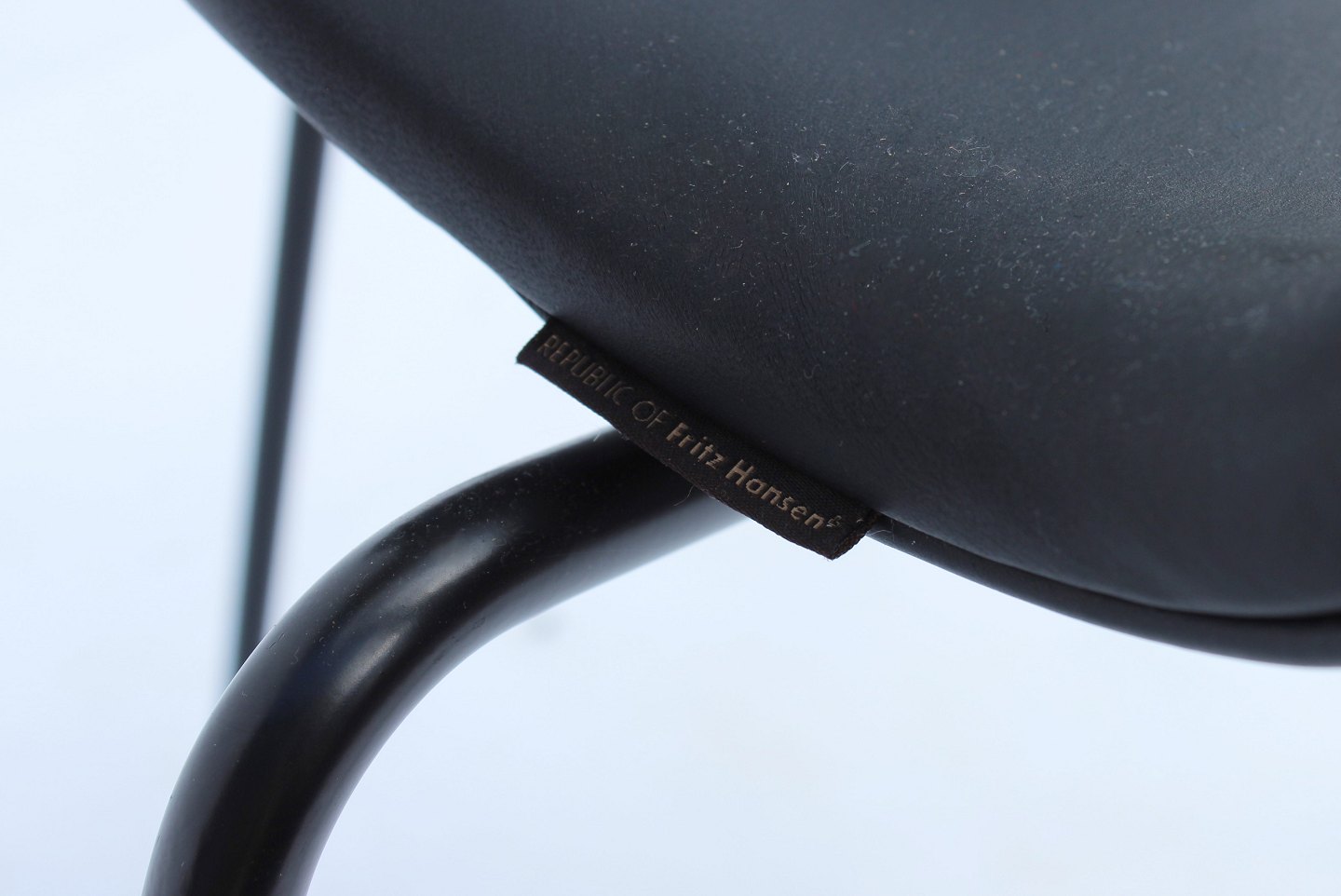 Fritz Hansen, en pioner inden for dansk møbeldesign, har opretholdt sit ry for førsteklasses håndværk og kvalitet i generationer. Deres omhu og præcision kan ses i hvert element af disse stole, fra det nøje udvalgte læder til den smidige og holdbare konstruktion.