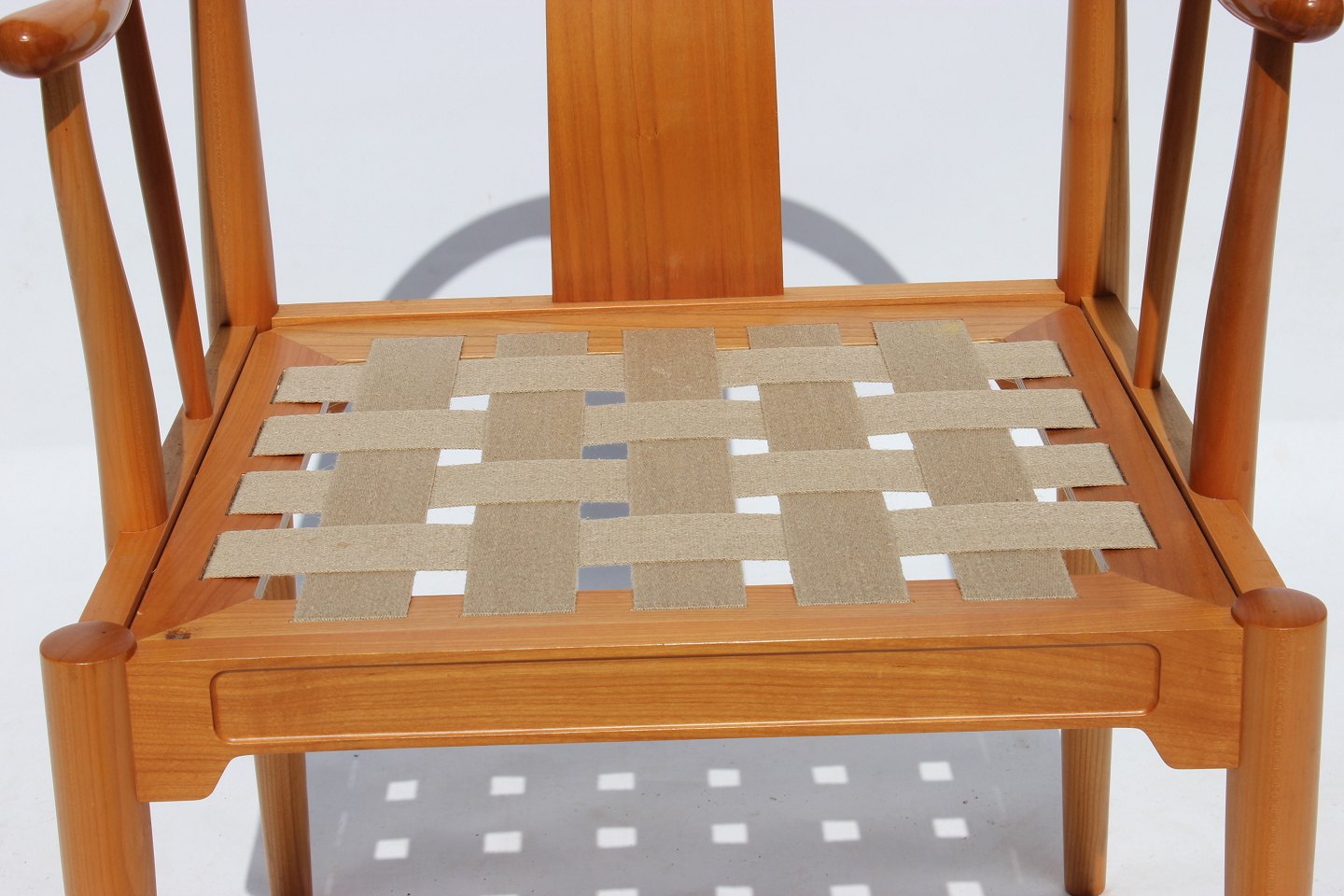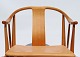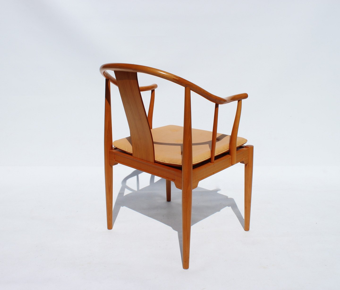 SoldA set of four China chairs, model 4283, designed by Hans J. Wegner in 1944 and manufactured by Fritz Hansen in 1999. The chairs are of cherry and with cushion of patinated leather. 2 chairs left.