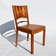 Set of Six Carpenter Dining Chairs - Different Types of Wood - Cognac colored elegance leather - 1950