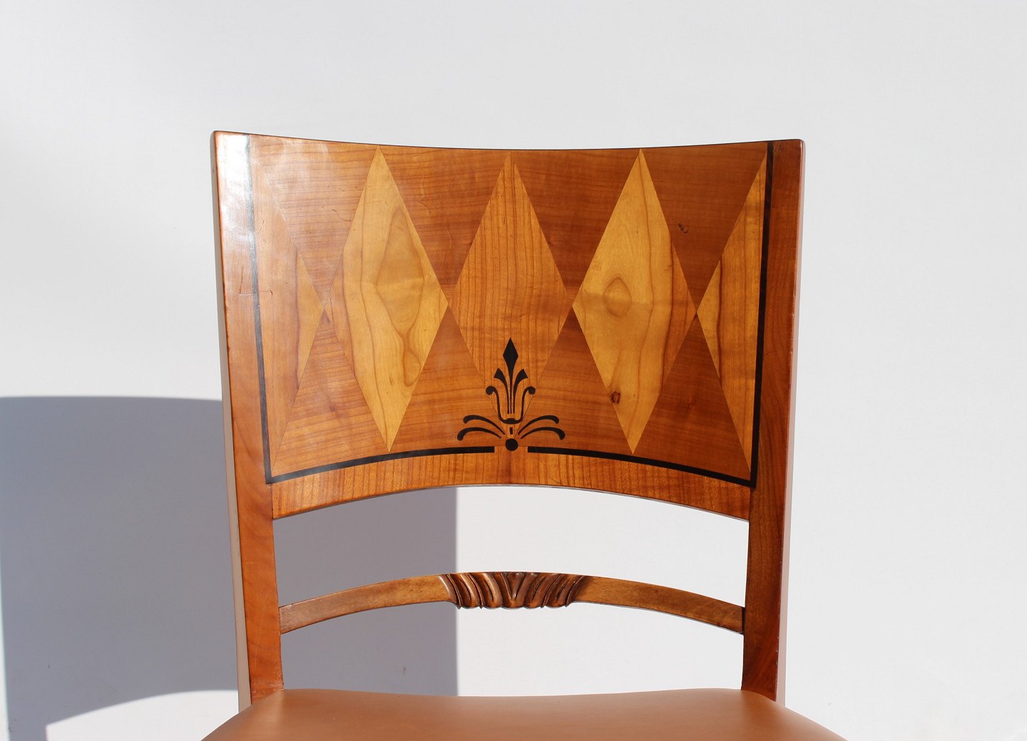 Every element of these chairs, from the beautifully carved wooden details to the luxurious leather upholstery, shows a true sense of quality and aesthetics. Their timeless design makes them suitable for a variety of interior styles and is sure to add a sense of elegance and warmth to any dining area.