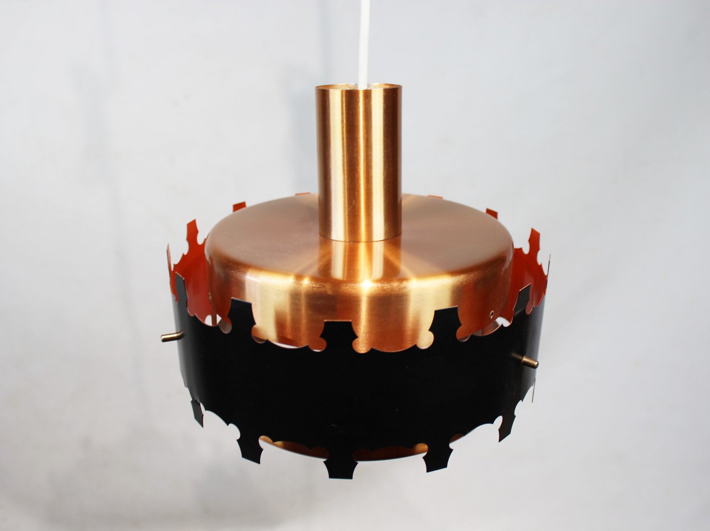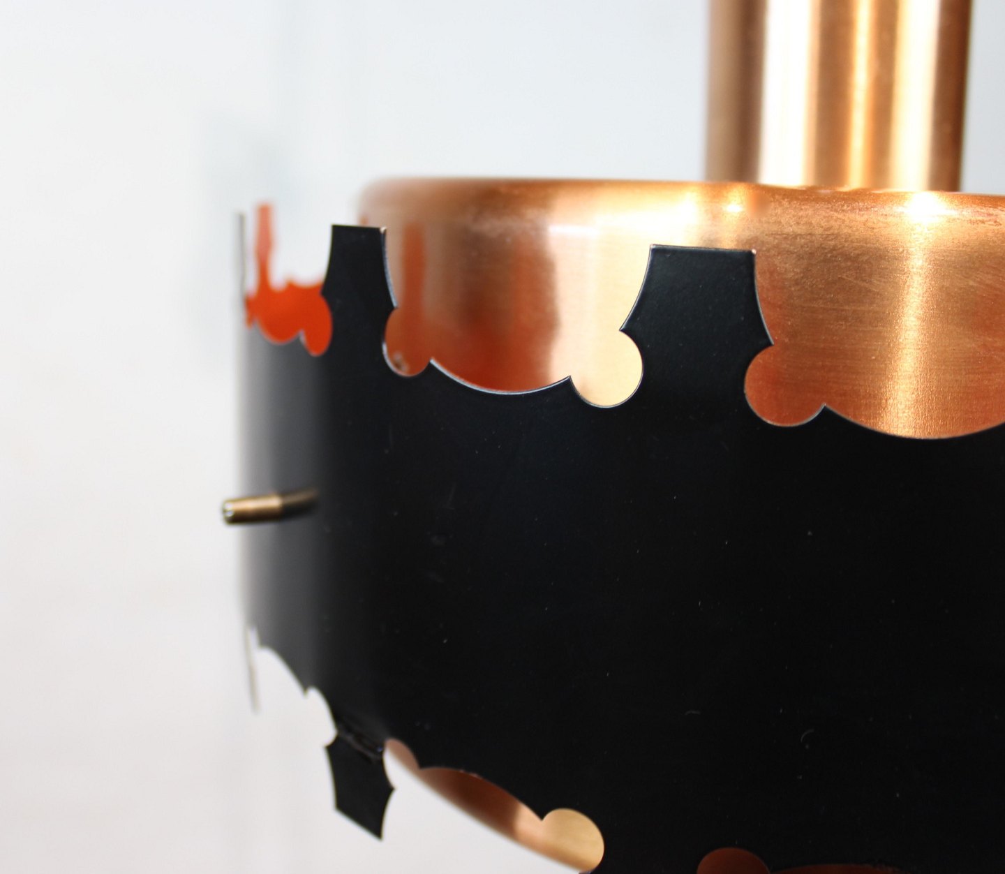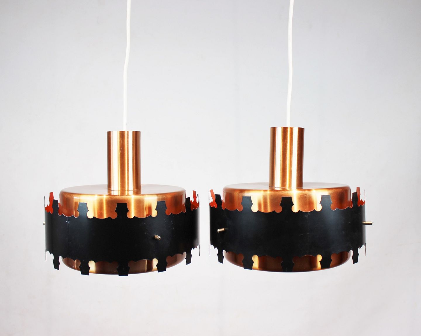 A pair of pendants in copper and black metal of danish design from the 1970s. The lamps are in great vintage condition.