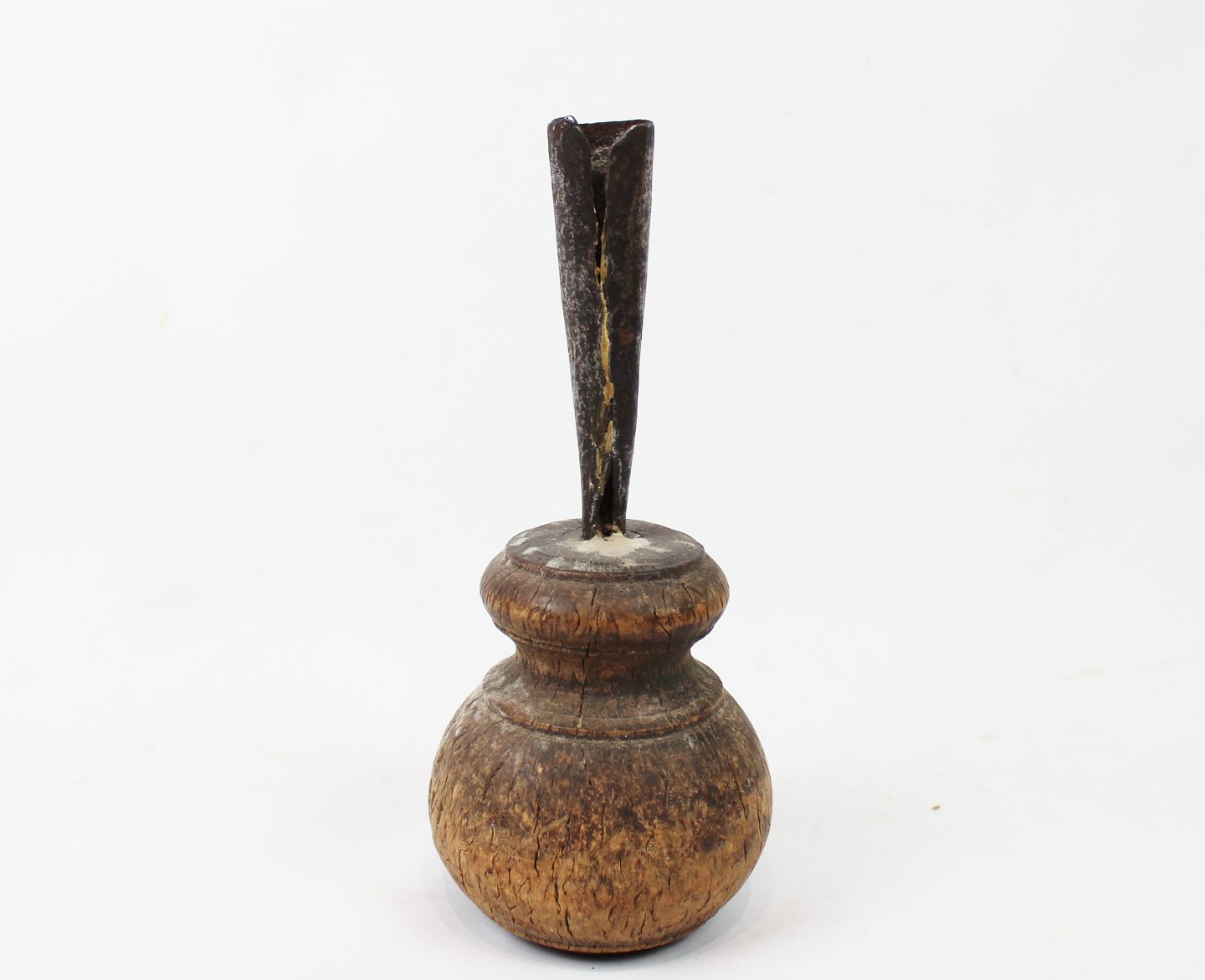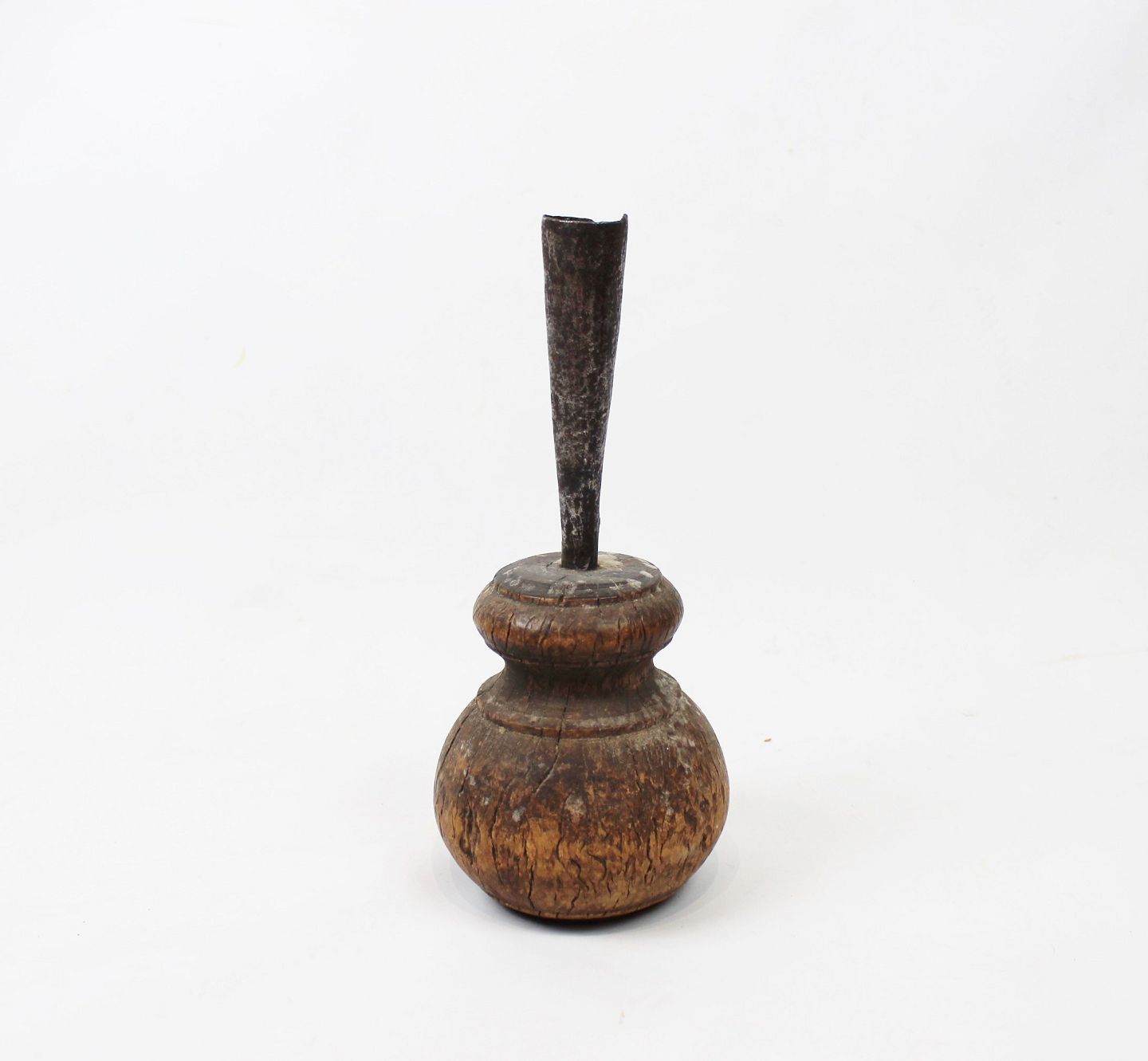 Svensk lysestage af træ og metal fra omkring år 1780.