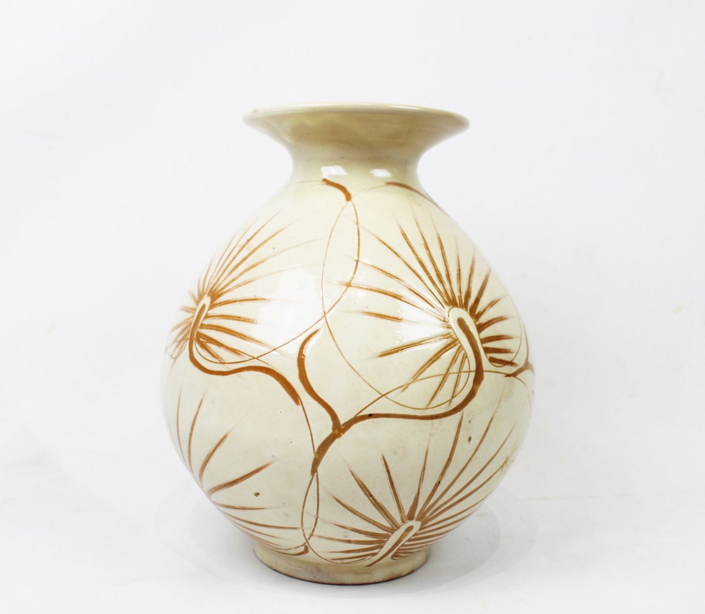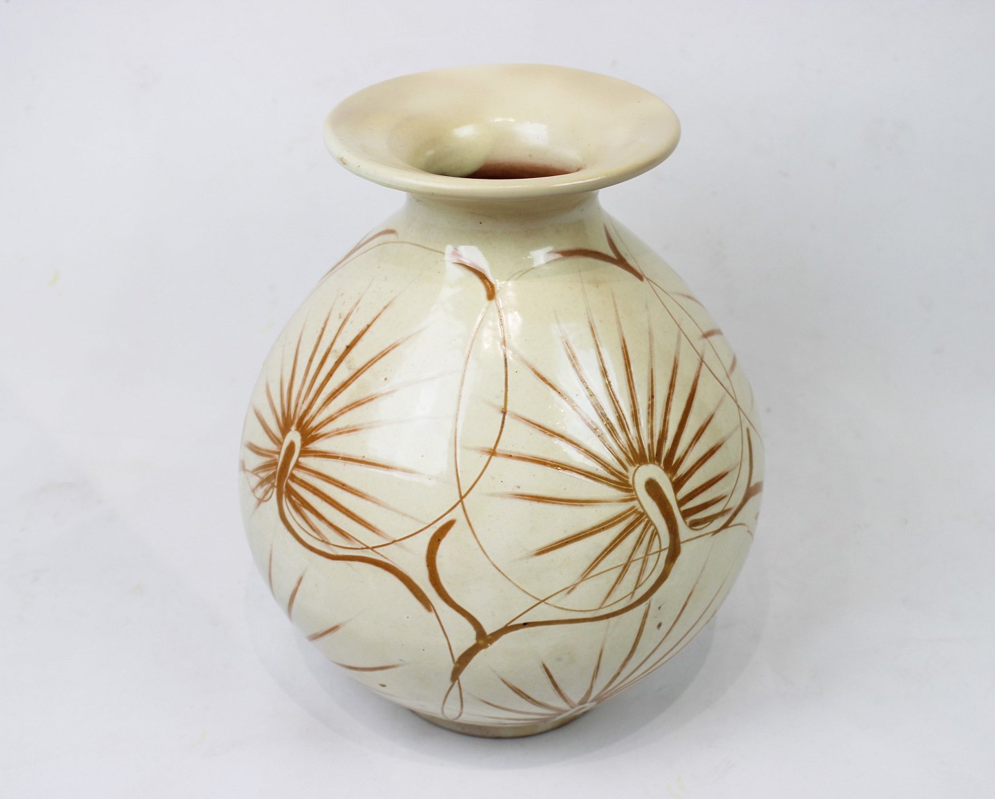SoldCeramic vase in light colors by Herman A. Kähler. The vase is in great vintage condition.