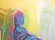 Oliemaleri på lærred i stærke farver af den dansk kunster Åse Højer, f. 1952. Maleriet er med en mørk ramme, samt i flot stand.