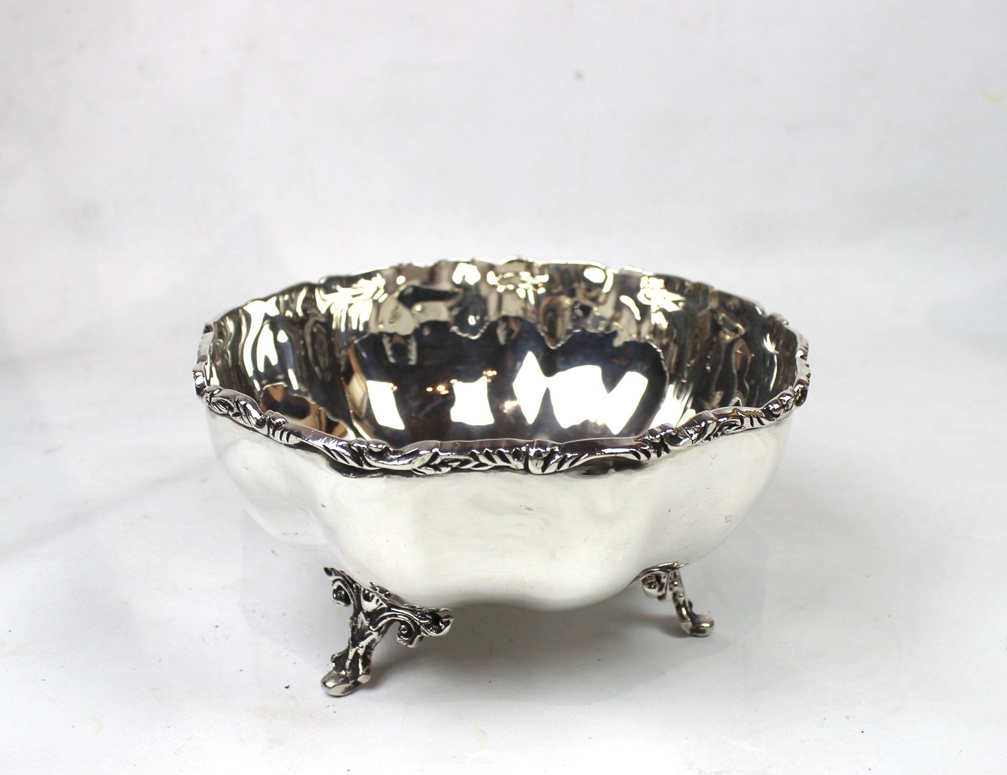SoldBowl on feet with decorated edge of 925 sterling silver.