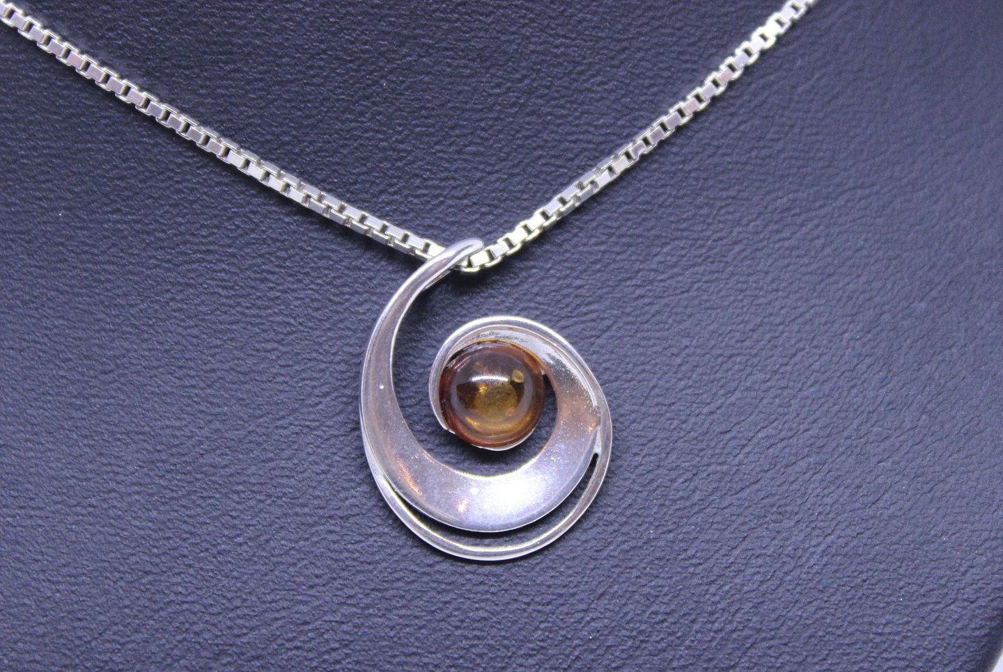 Venezia kæde med vedhæng dekoreret med rav, af 925 sterling sølv.