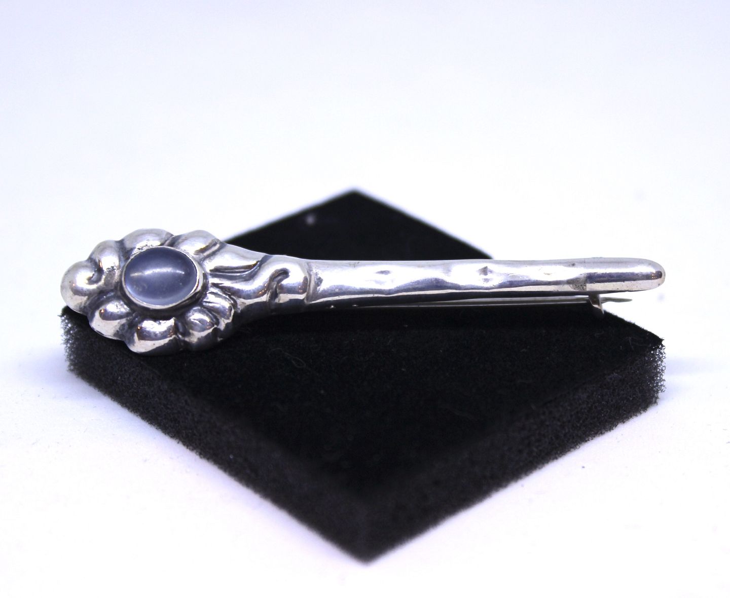 Brooch with moonstone and of 925 sterling silver stamped VM.