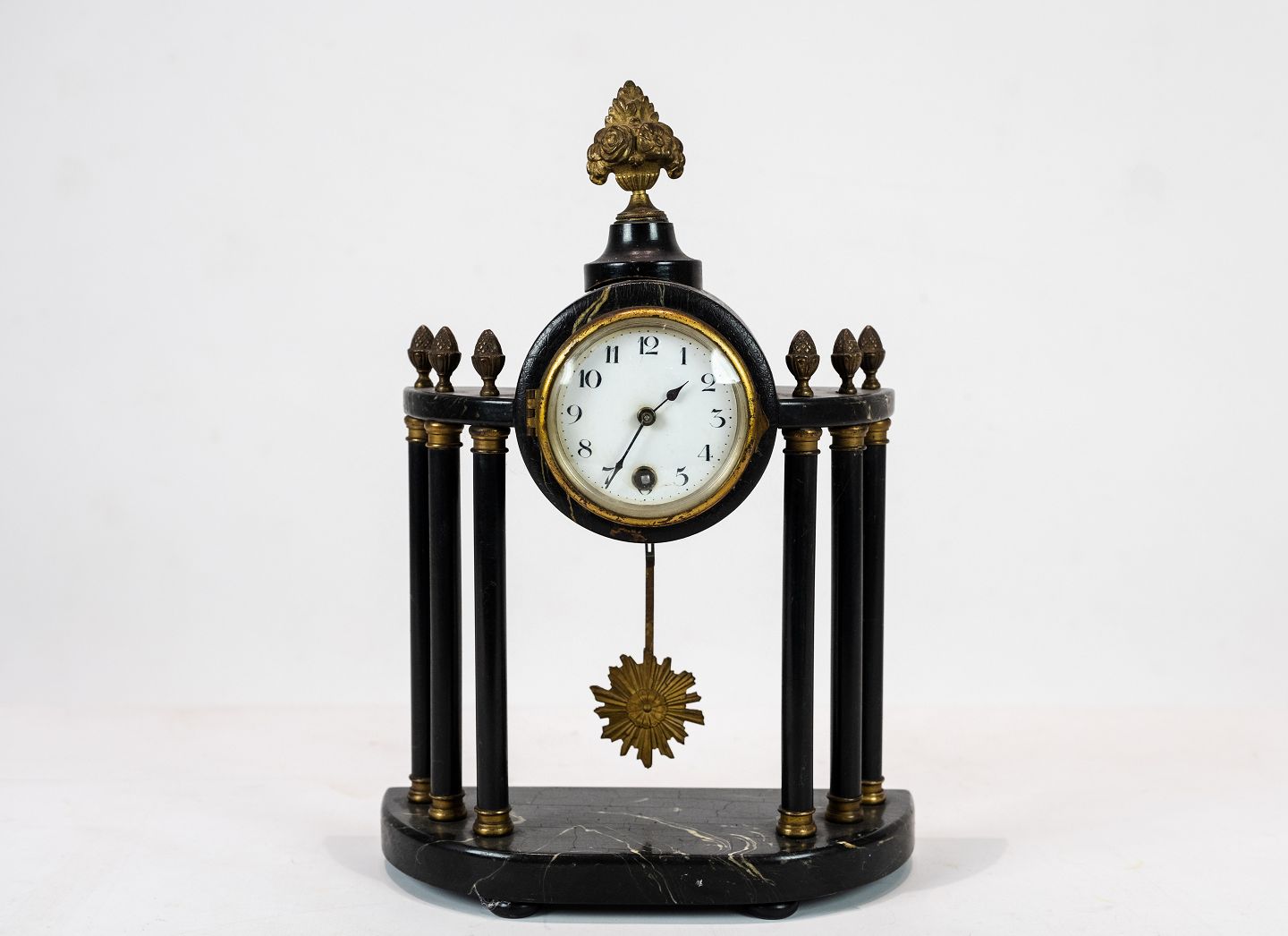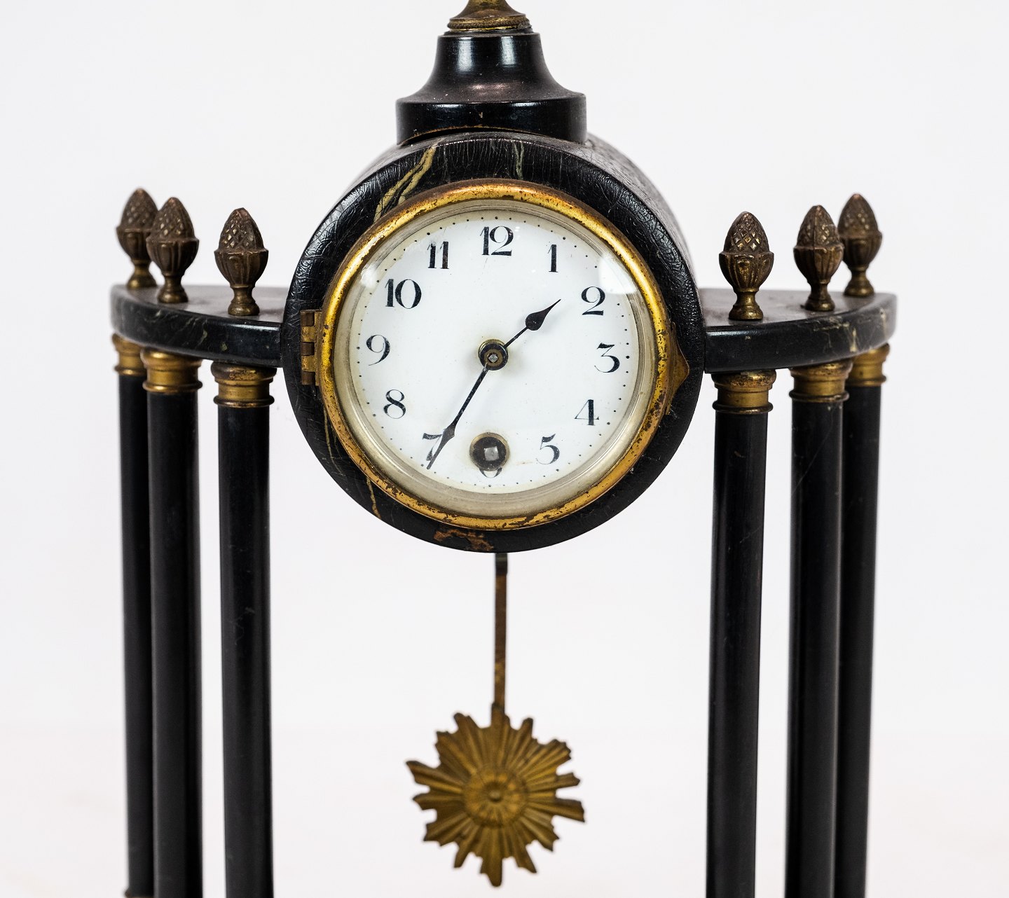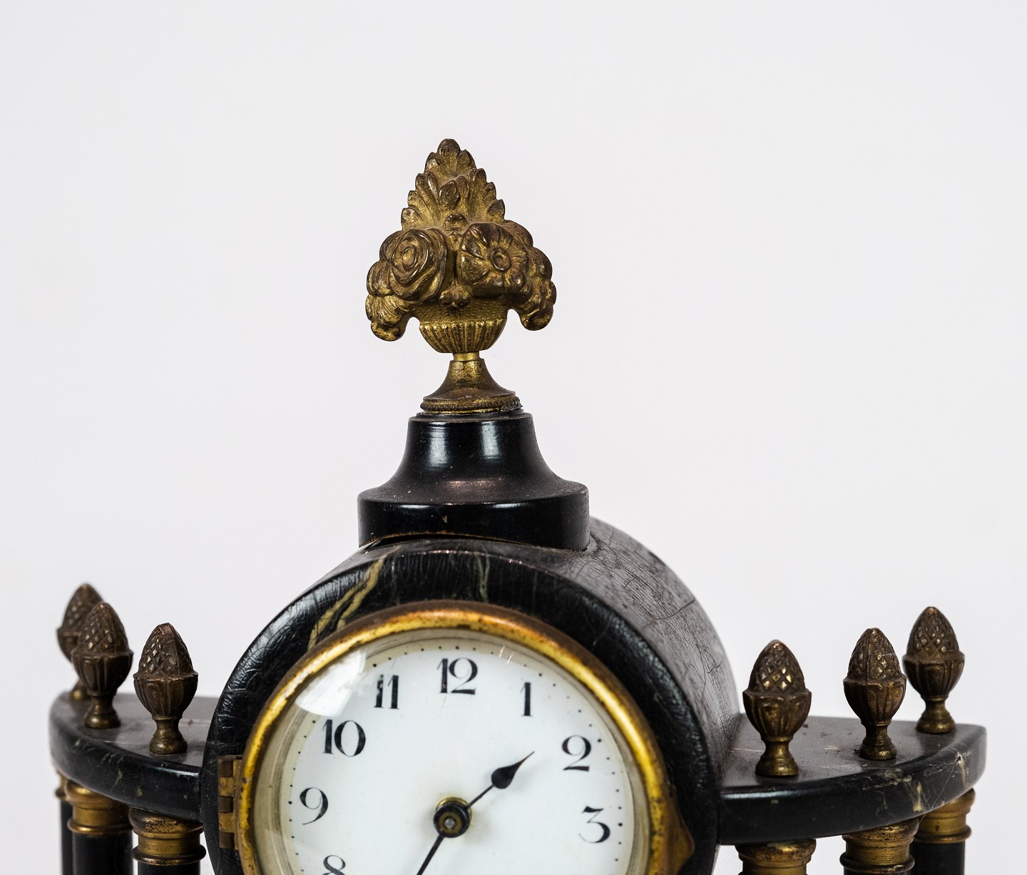 Antik fransk kamin ur fra omkring 1840 med lueforgyldning. Uret er i flot brugt stand.