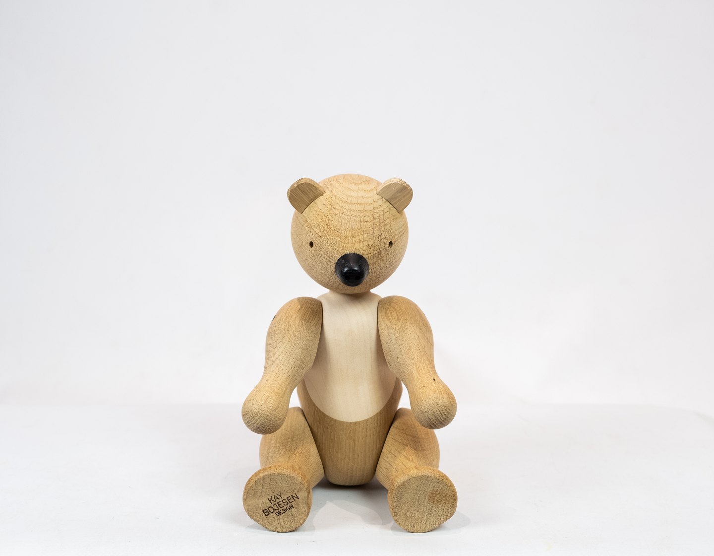 Bear of oak and ash designed by Kay Bojesen in 1952. Kay Bojesen was inspired by a small bearcub named Ursula, who had been abandoned by her mother and grew up the inspector of the Copenhagen Zoo.