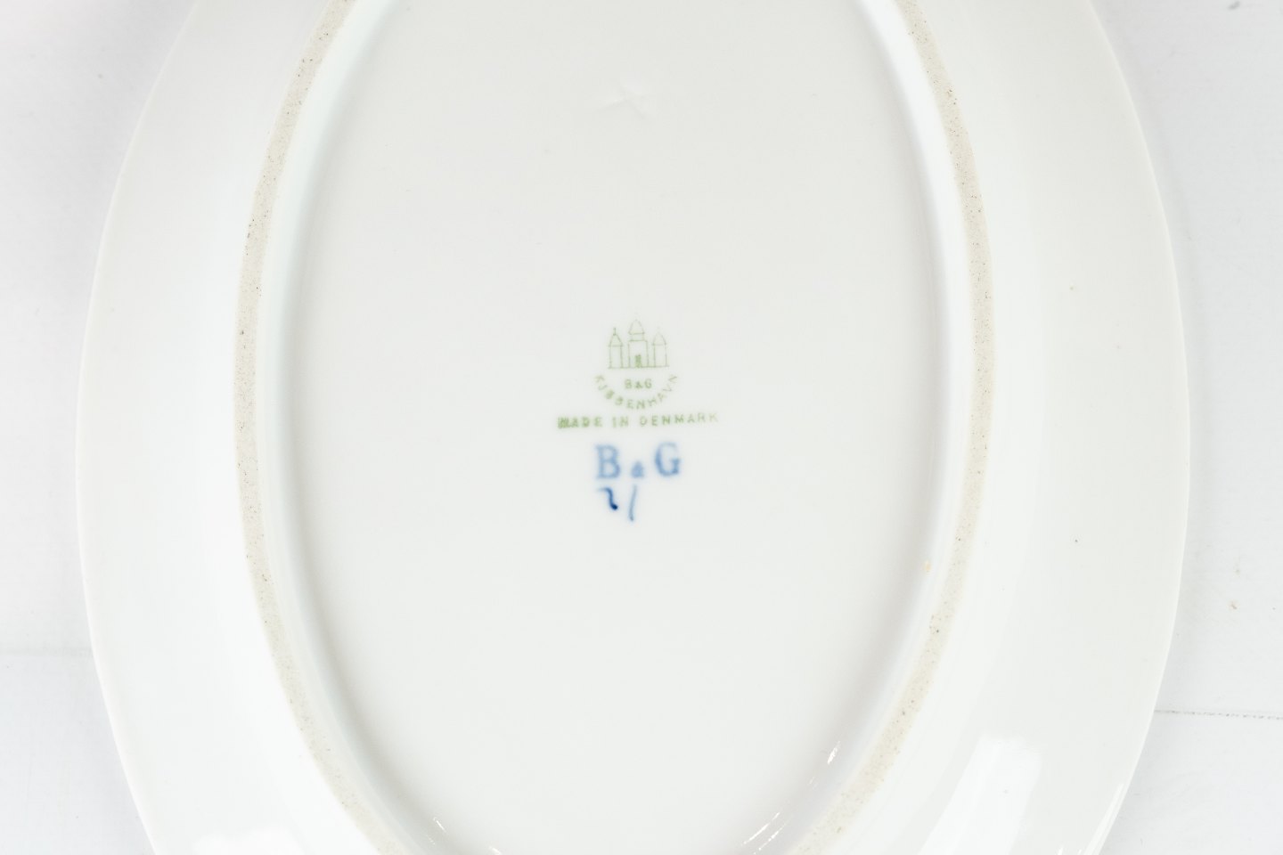 Ovalt fad blåmalet af Bing og Grøndahl.