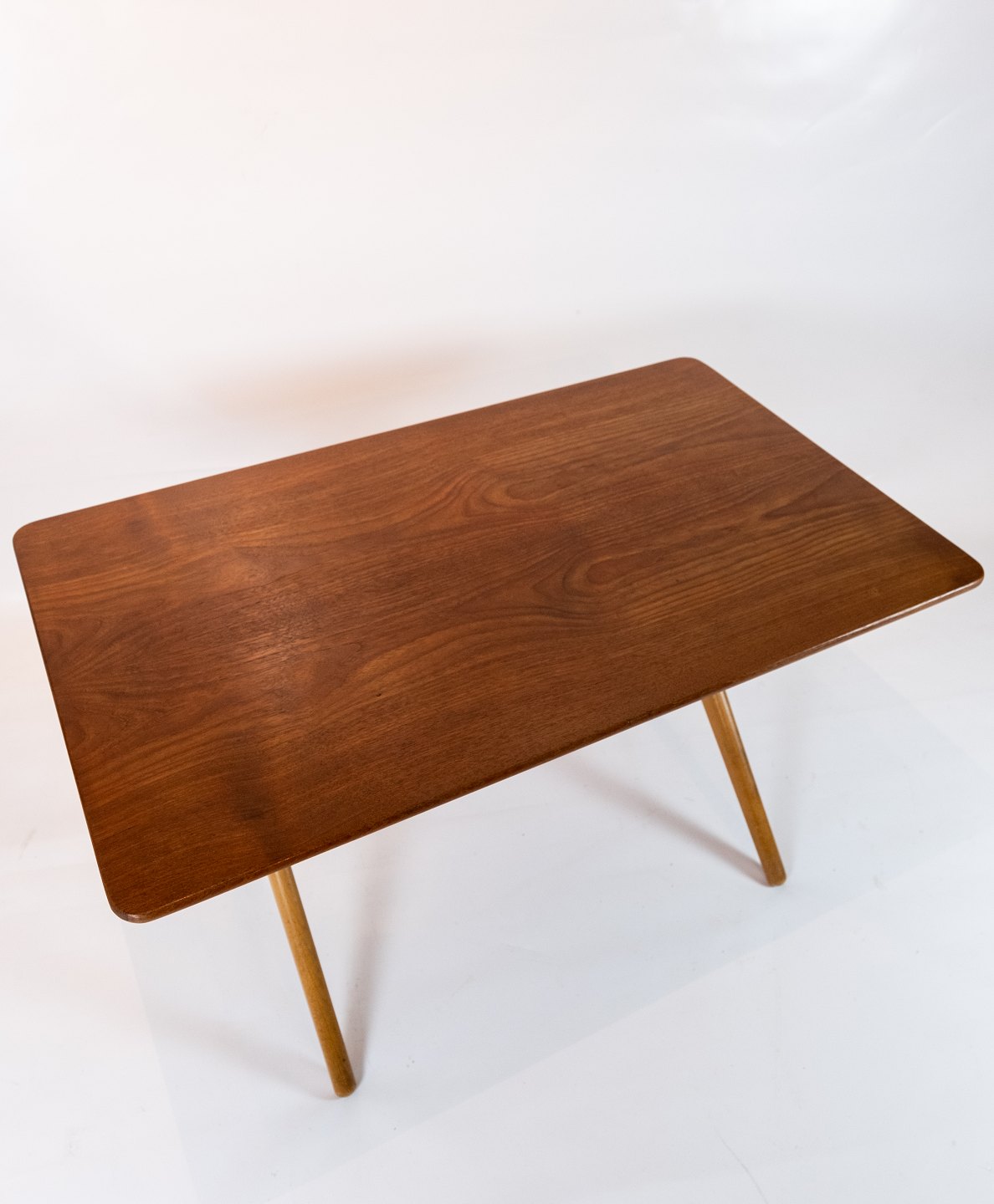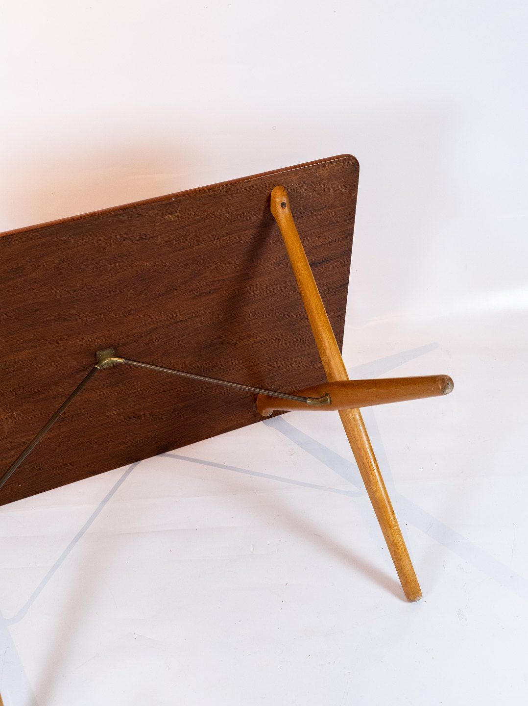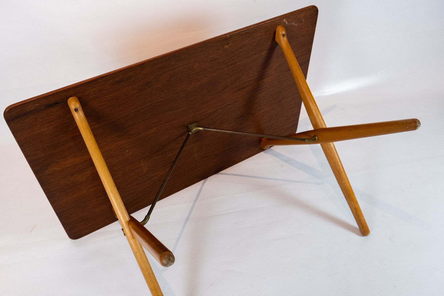 SoldCross legged coffetable, model AT-308, designed by Hans J. Wegner in 1955 and manufactured by Andreas Tuck. The plate is of teak, legs of oak and in great vintage condition.