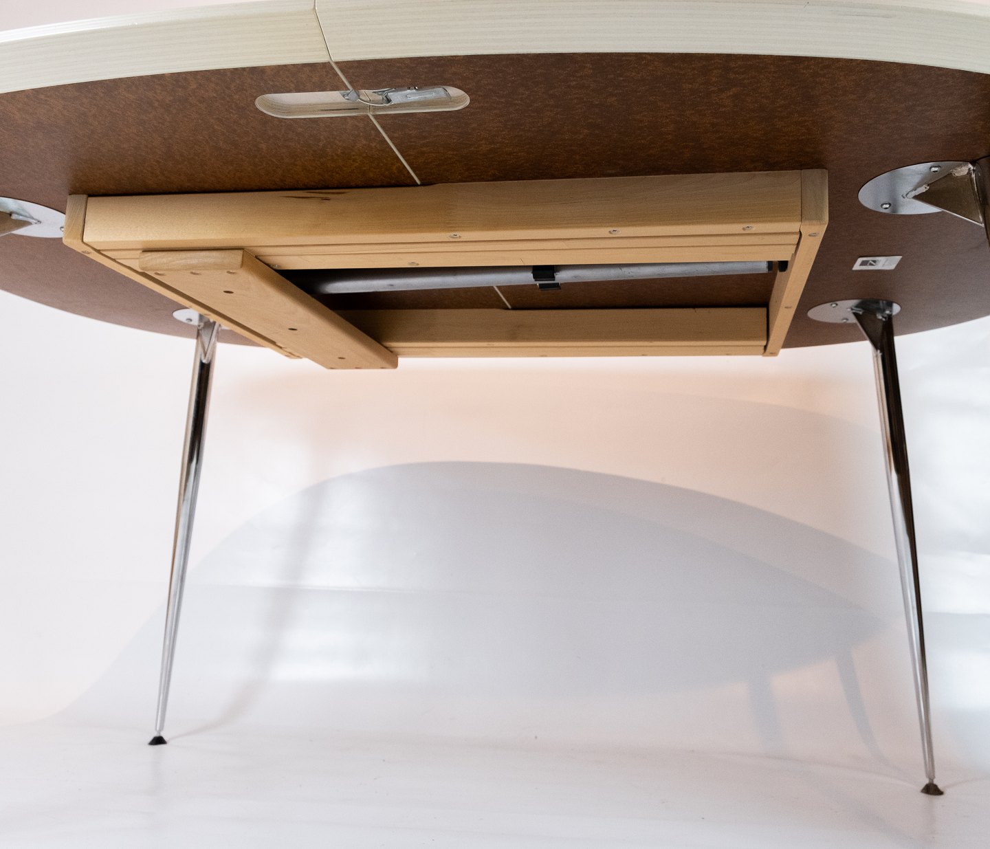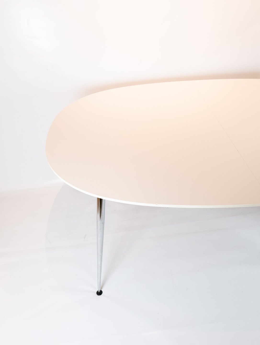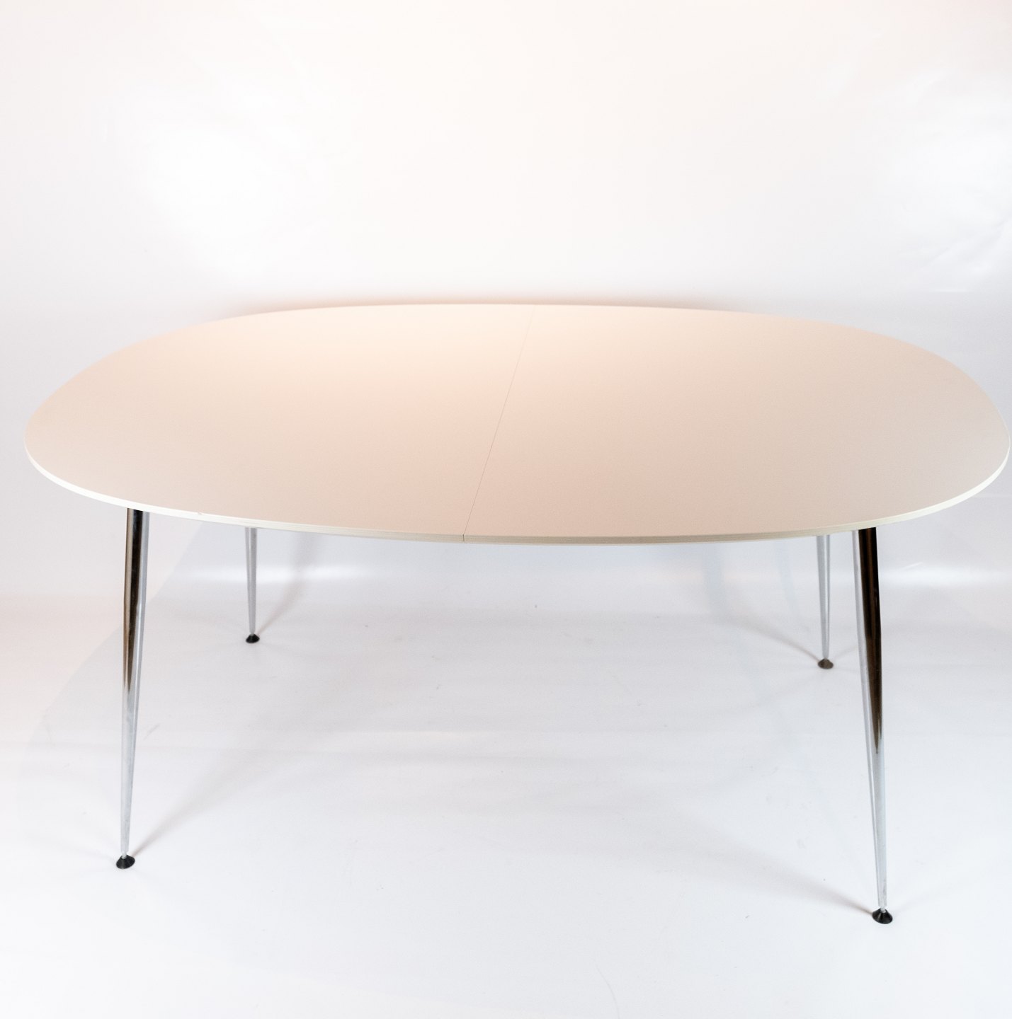 SoldDining table in white laminate of danish design manufactured by Zeta Furniture. The table is in great used condition.