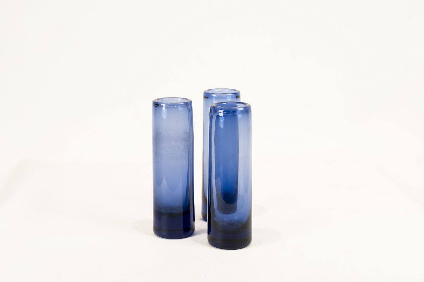 Sæt af tre mørkeblå glas vaser af Per Lütken for Holmegaard.