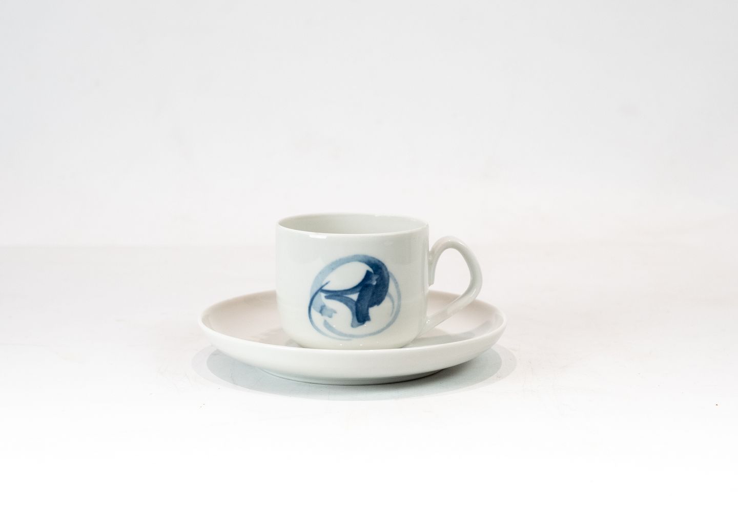 Kaffekop med underkop i Blå Koppel, nr.: 305 af Bing og Grøndahl.