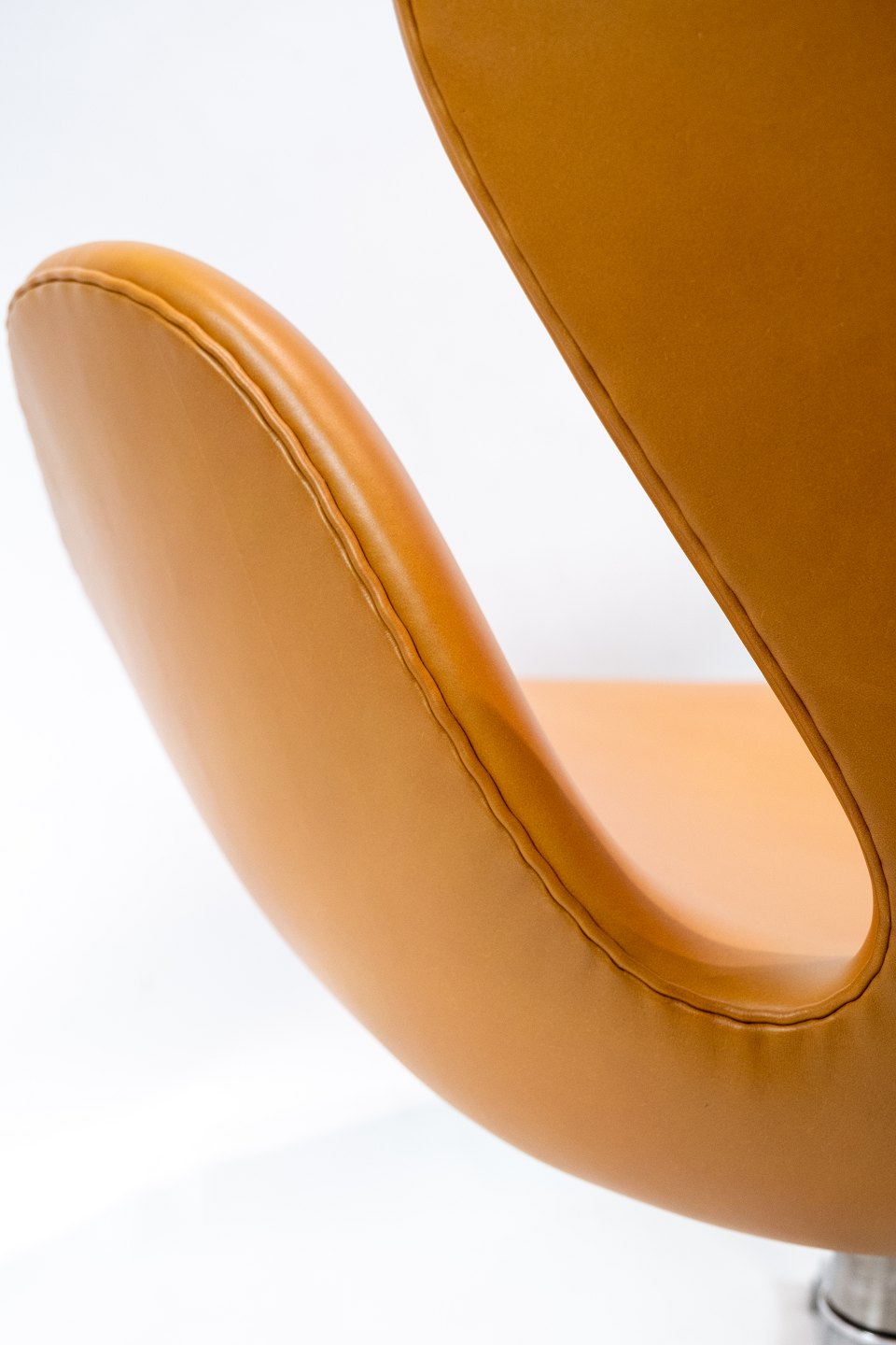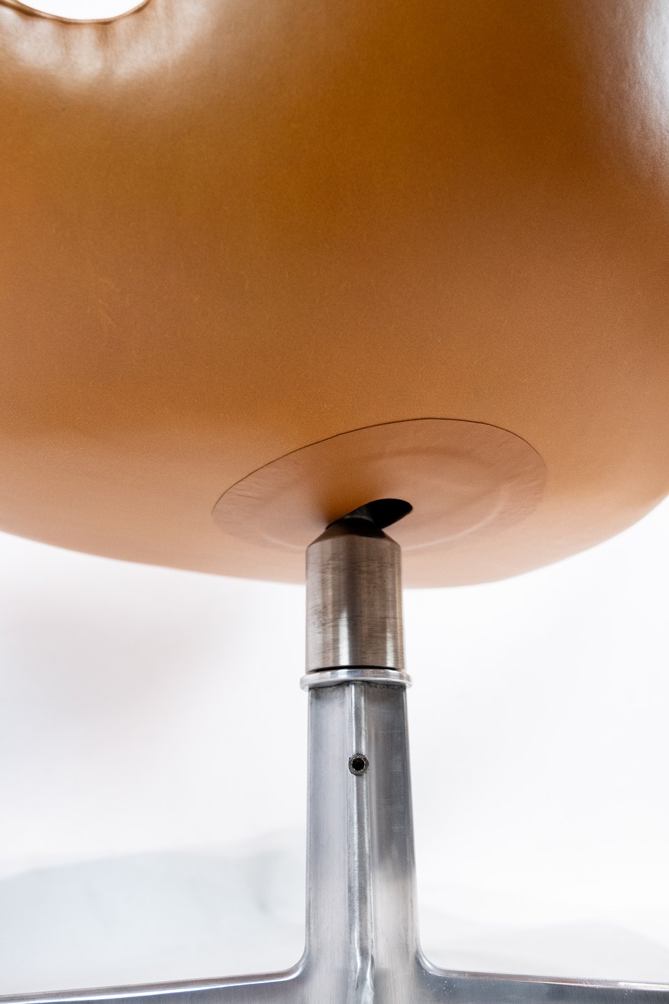 The swan is rotatable and stands on an aluminum base with a special tall column, adding a modern and stylish dimension to the design. The chair's swivel function and ergonomic shape make it ideal for both work and relaxation areas, where comfort and style are essential.
