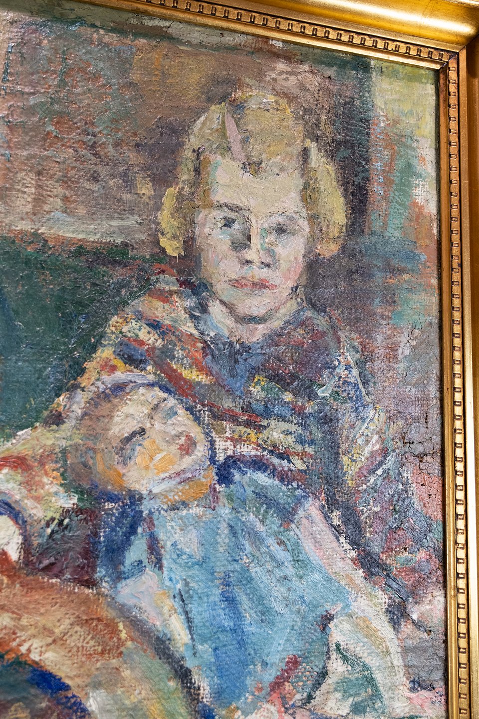 Olie maleri, portræt af børn, signeret Klenø af Evgenij Klenø (1921-2005) fra 1946. Maleriet er i flot brugt stand.