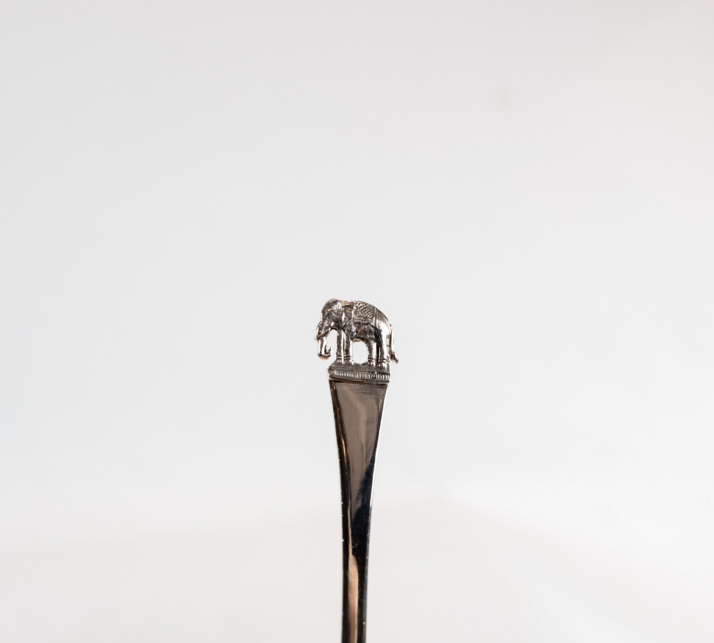 Skubopper dekoreret med elefant og af tretårnet sølv.