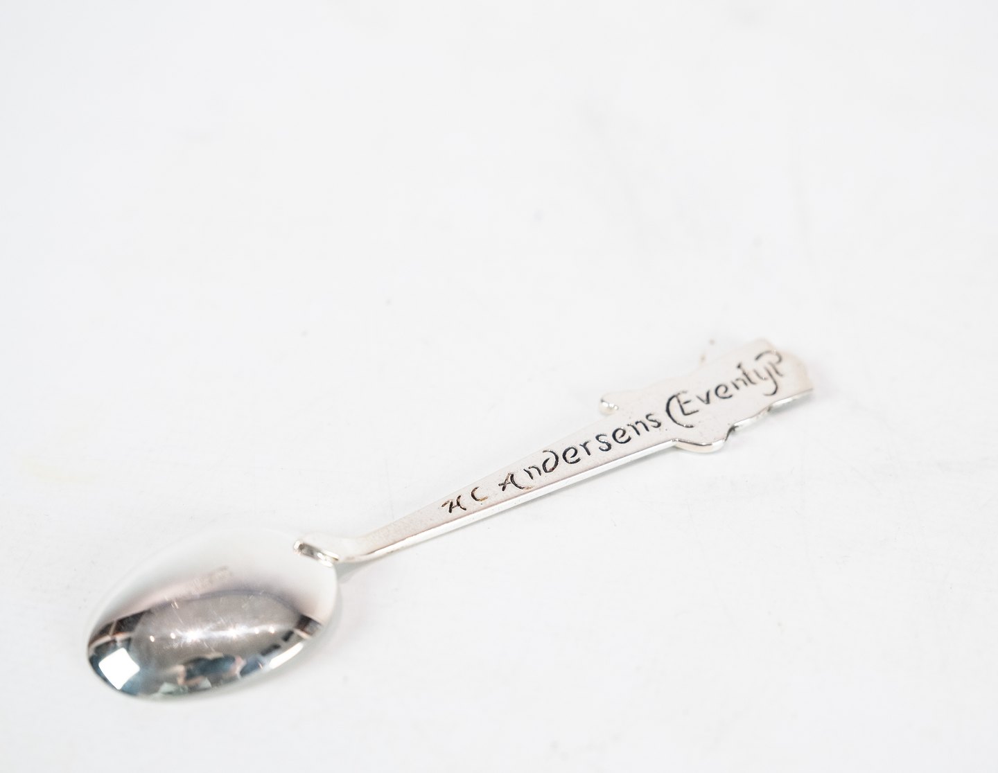 Small children's spoon with motif of H.C. Andersens's The Little Match Girl in hallmarked silver.