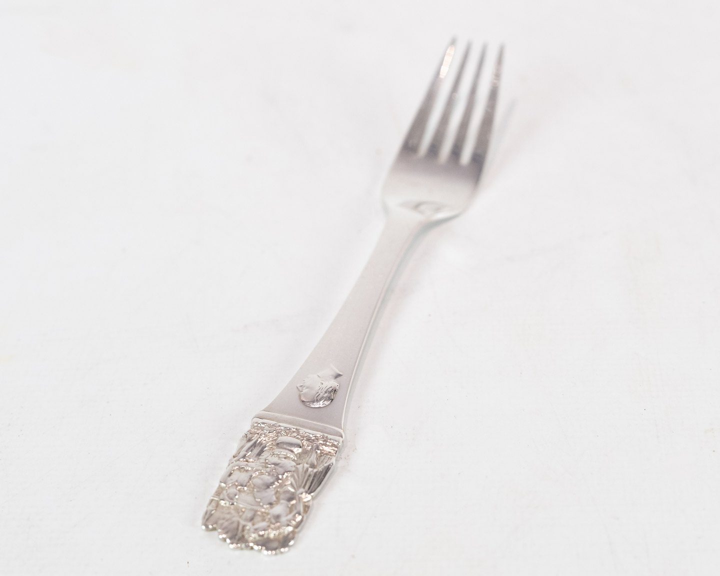 SoldChildren's spoon and fork with motif of H.C. Andersen's Clumsy Hans in hallmarked silver.