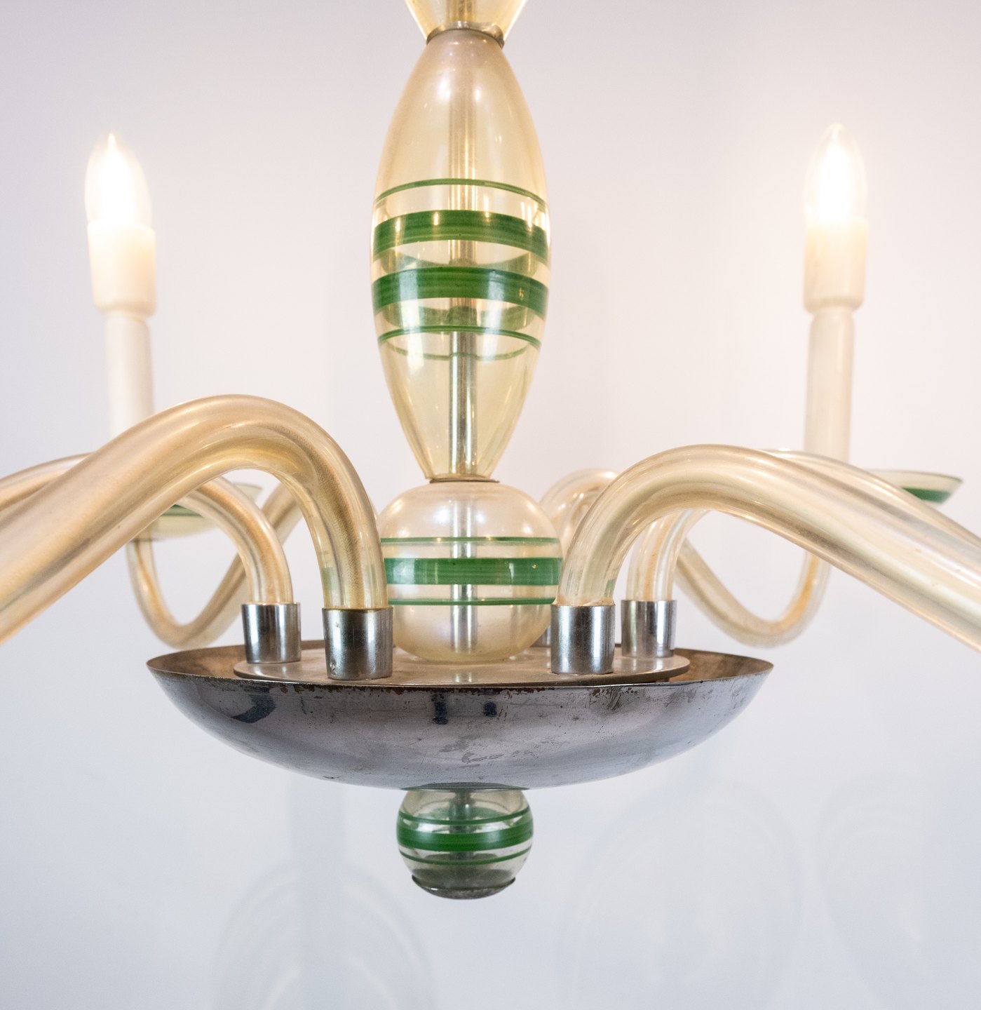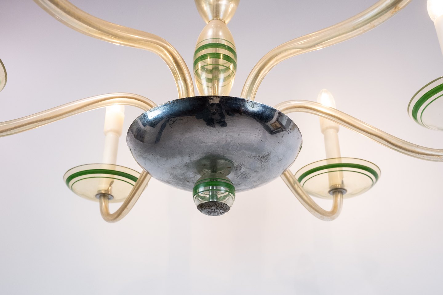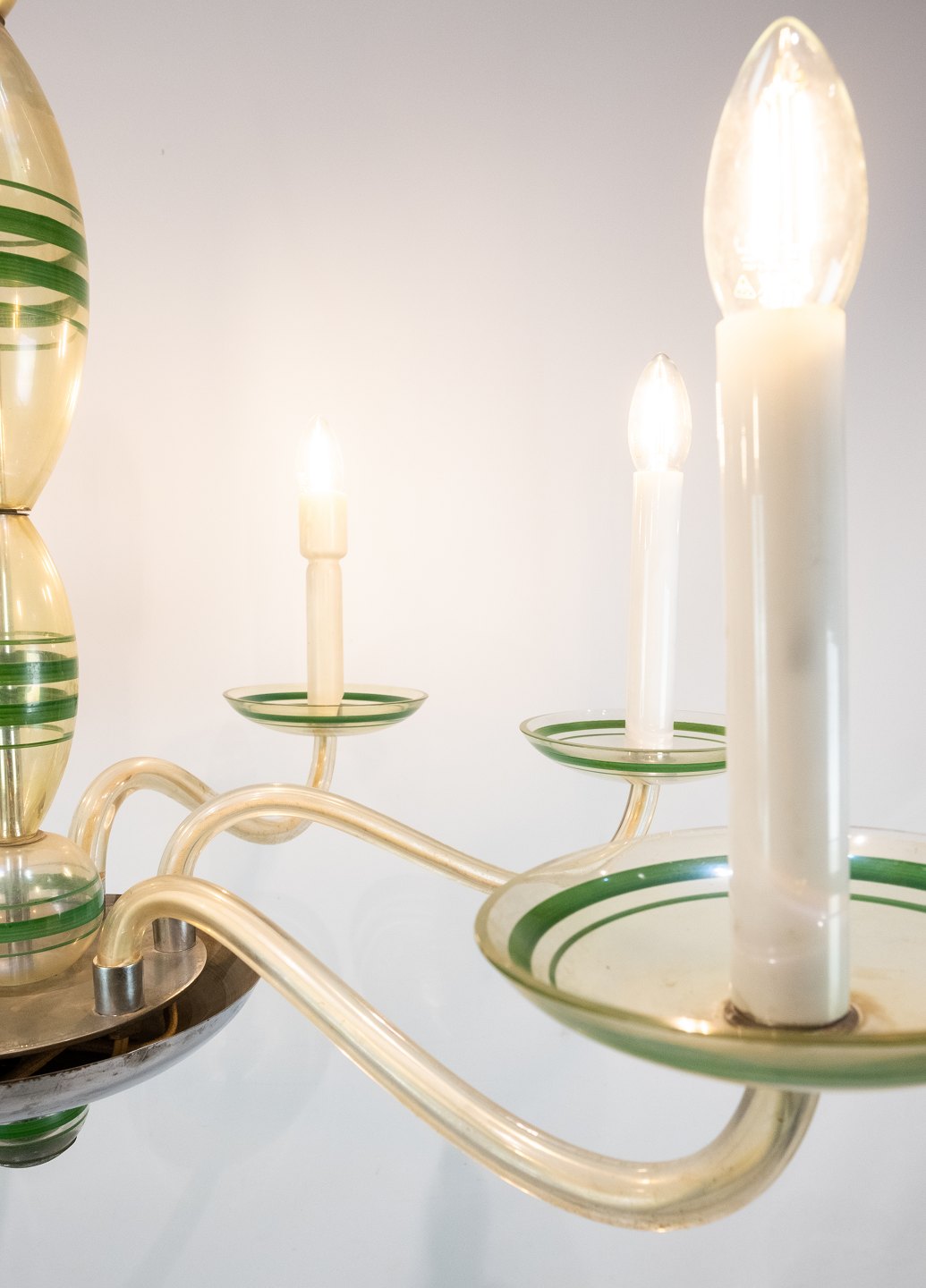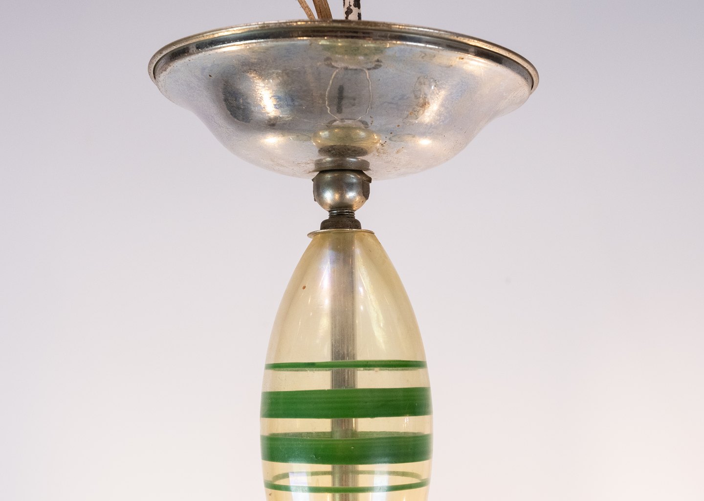 Chandelier of opaline glass decorated with green colours. The lamp is in great condition.