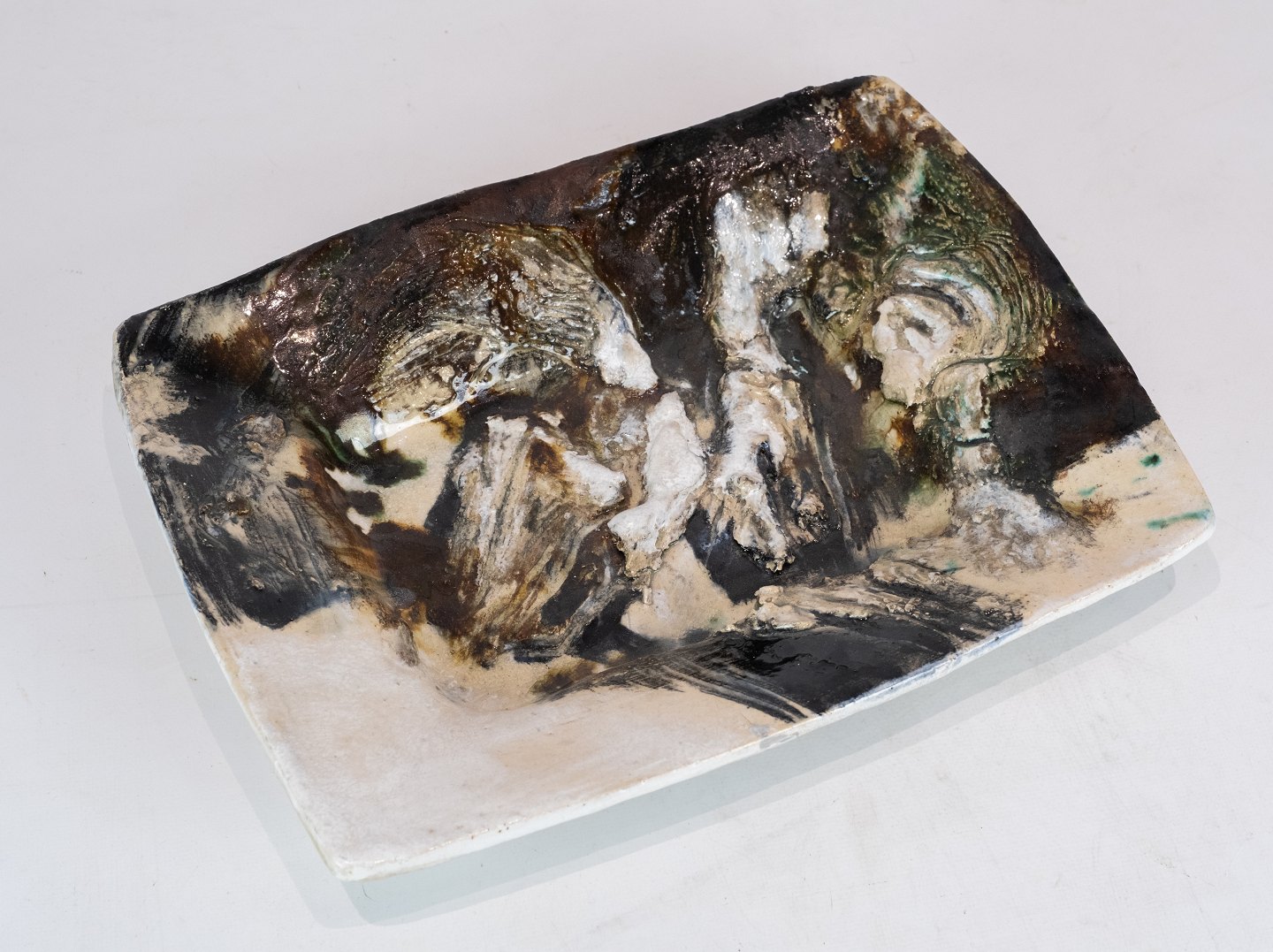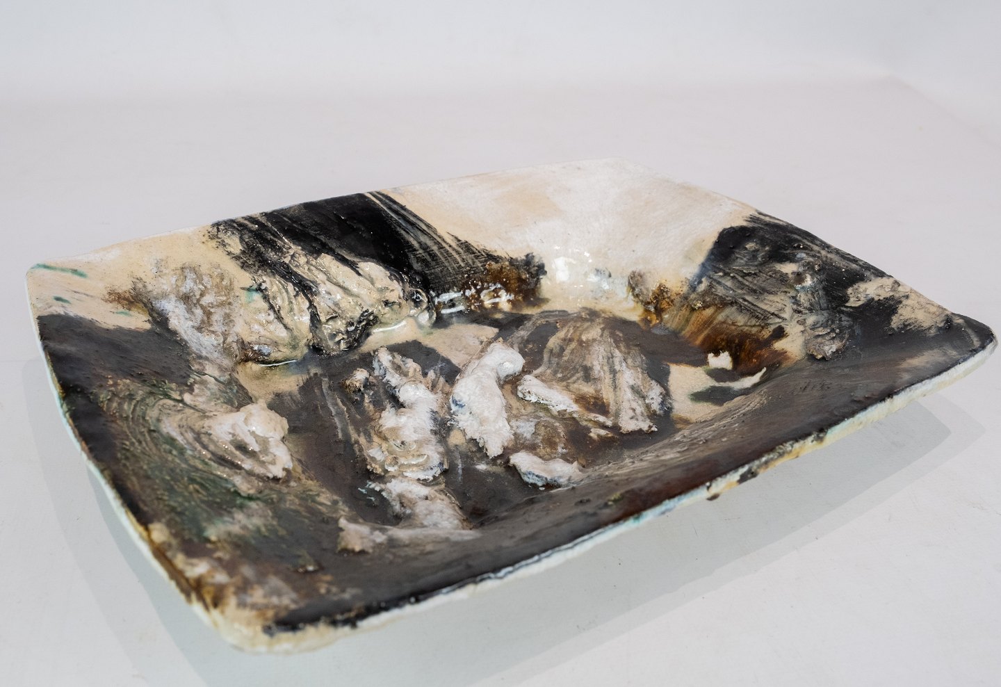 Ceramic dish in dark and light colors by Jeppe Hagedorn Olsen. The dish is in great vintage condition.