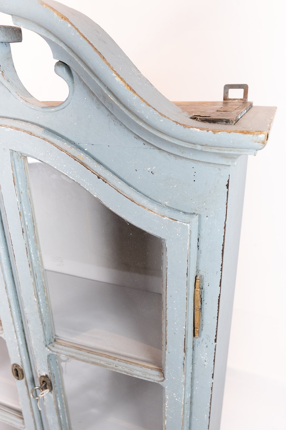 Højt gråmalet hænge vitrineskab i gustaviansk stil fra omkring 1820. Skabet er i flot brugt stand.