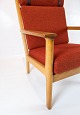Høj Lænestol - Egetræ - Rødt Uldstof - Hans J. Wegner - Getama - 1960