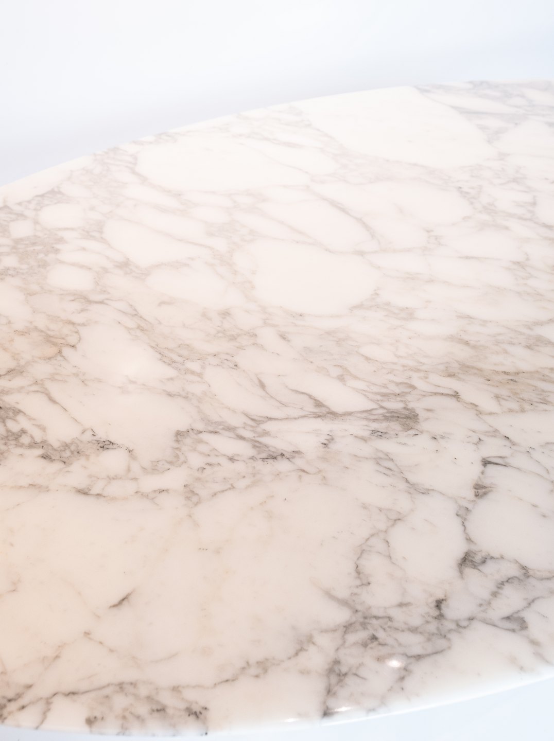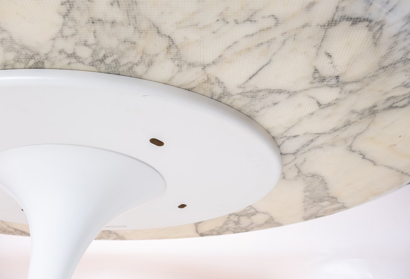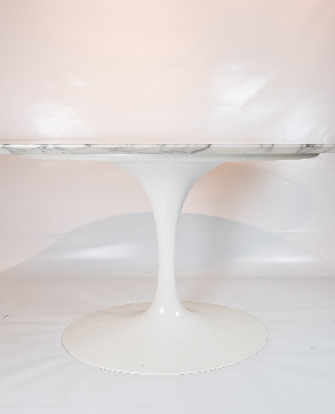We buyThe Tulip oval dining table with marble top, designed by Eero Saarinen in 1957 for Knoll Furniture, is an iconic representation of mid-century modern design. Saarinen created this table with a vision to clean up the "mess" of legs under traditional tables, resulting in the elegant, simple and sleek Tulip design.