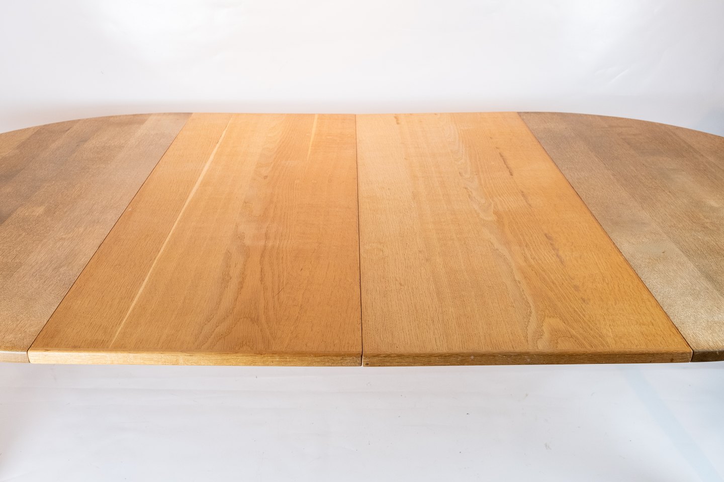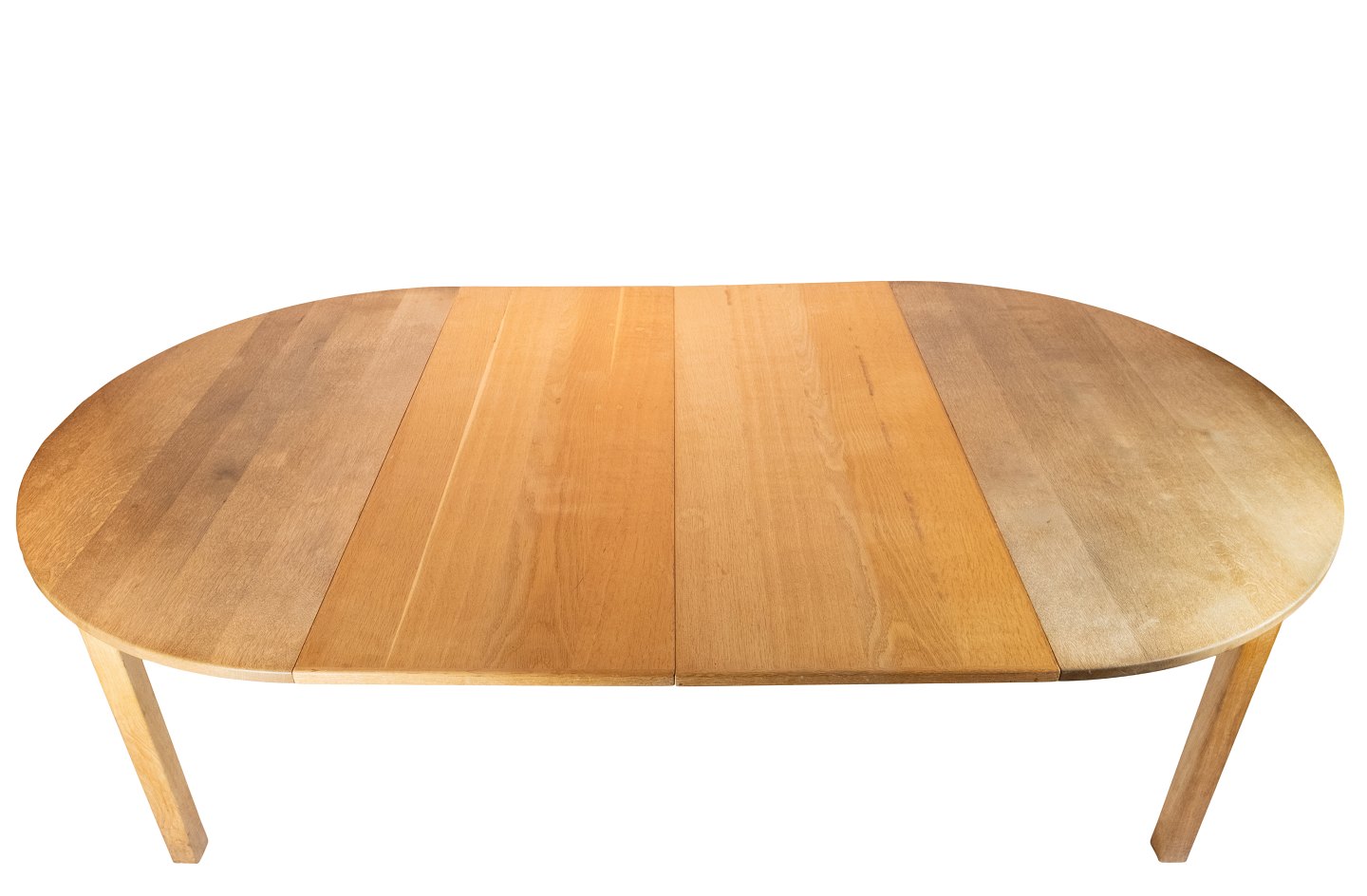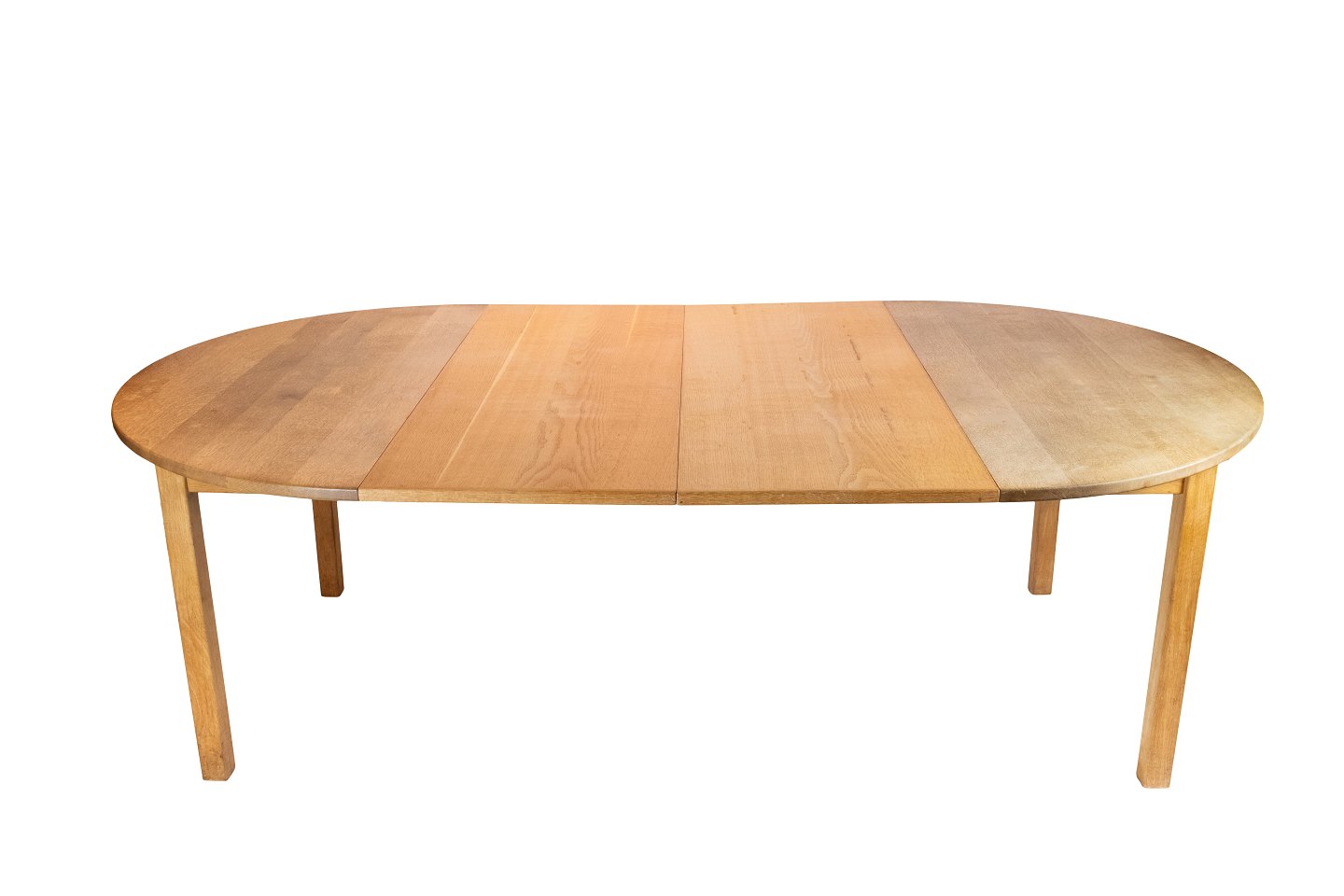 Dining table of oak with extension leaves designed by Kurt Østervig.