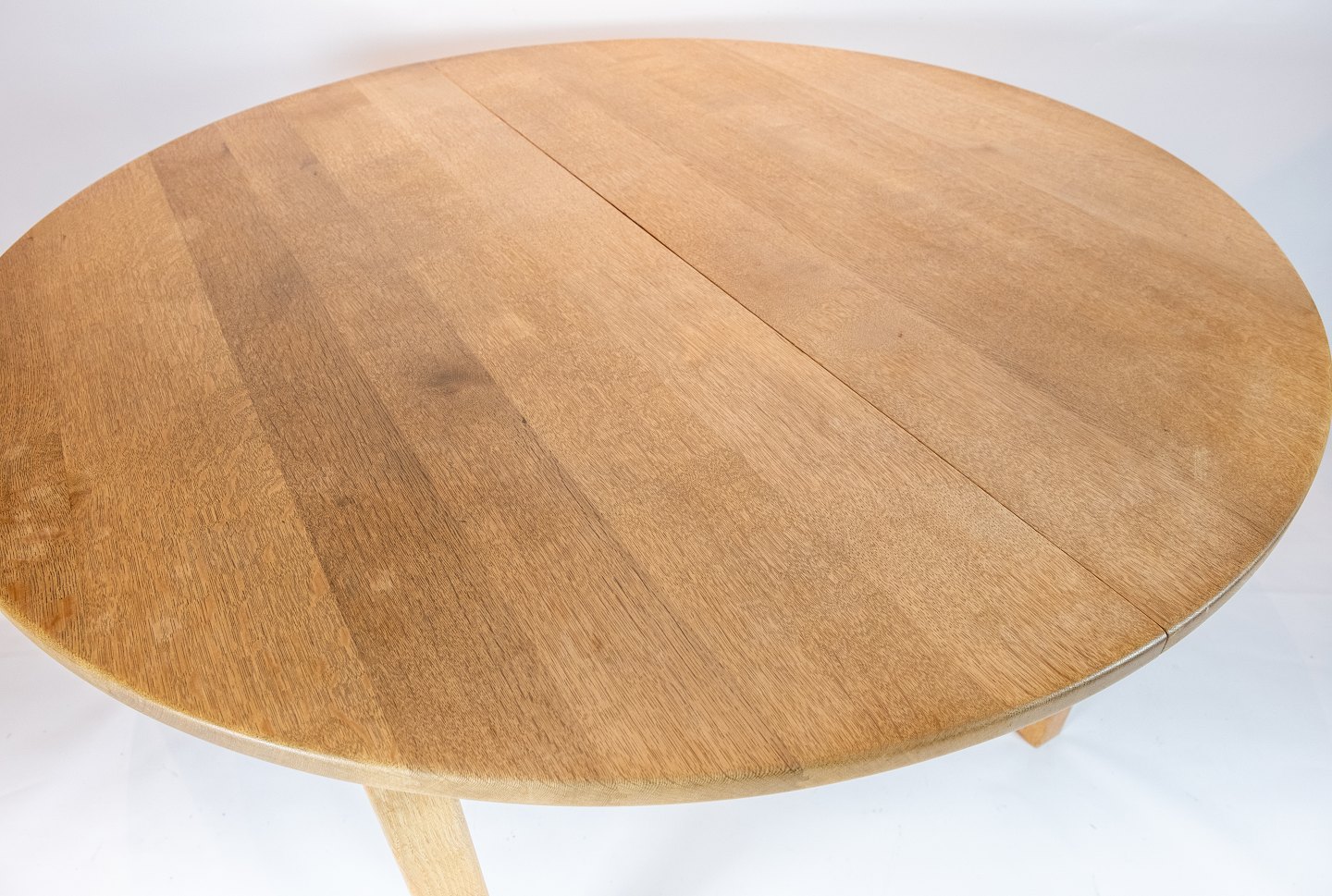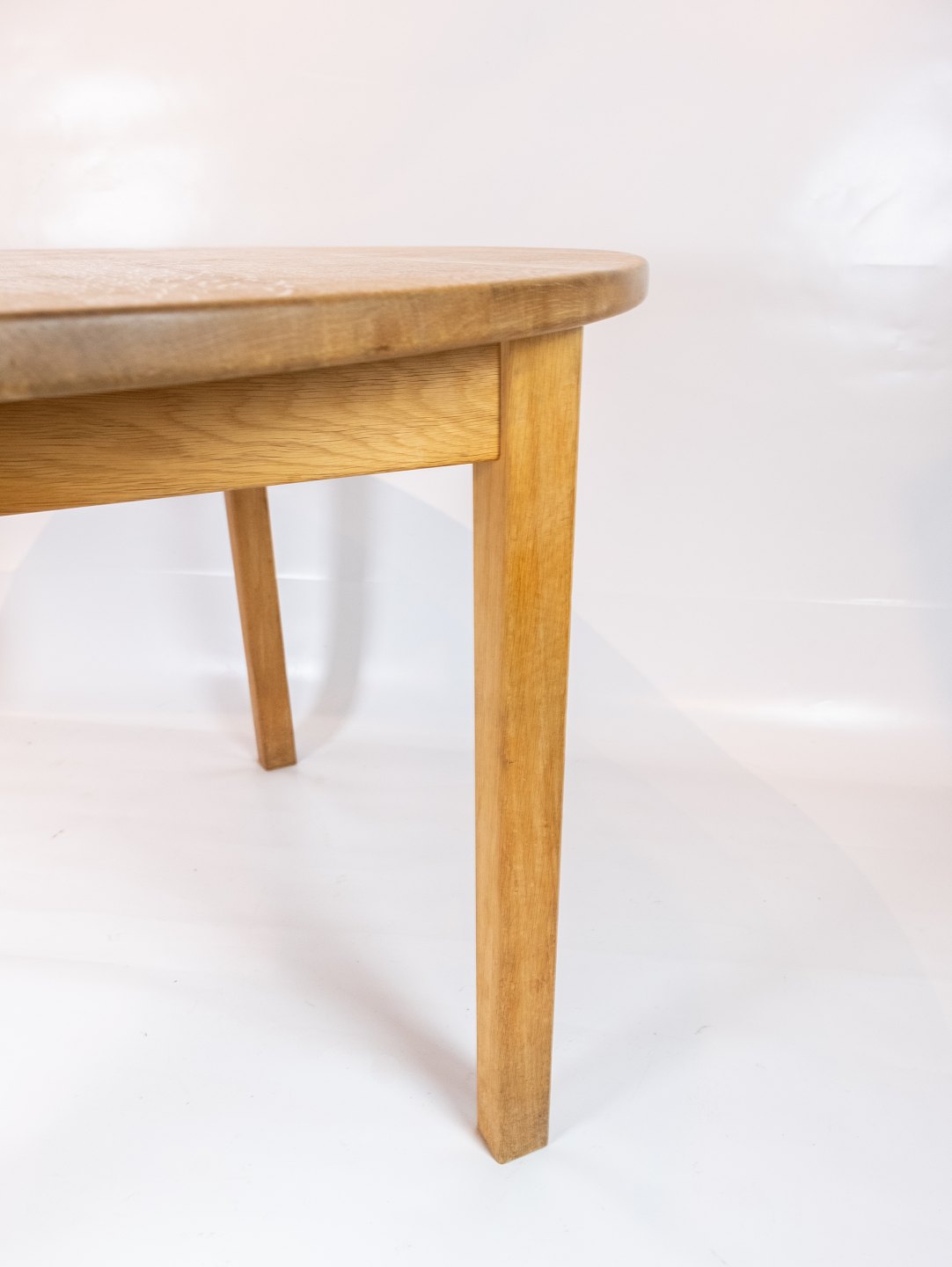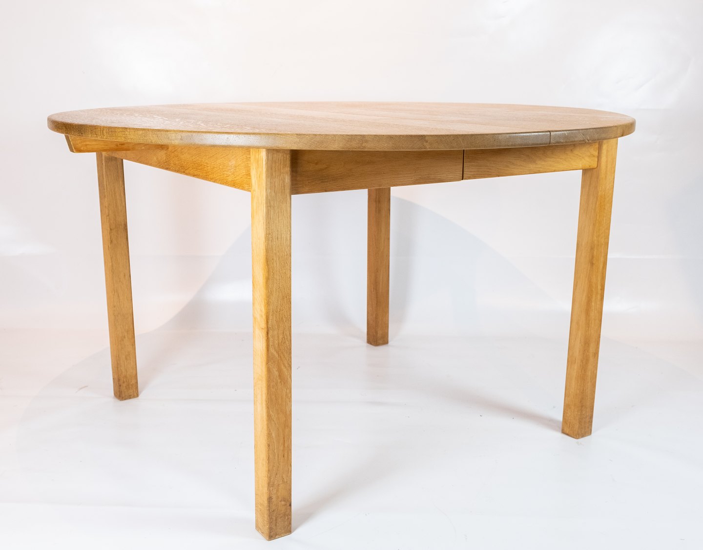 Dining table of oak with extension leaves designed by Kurt Østervig.