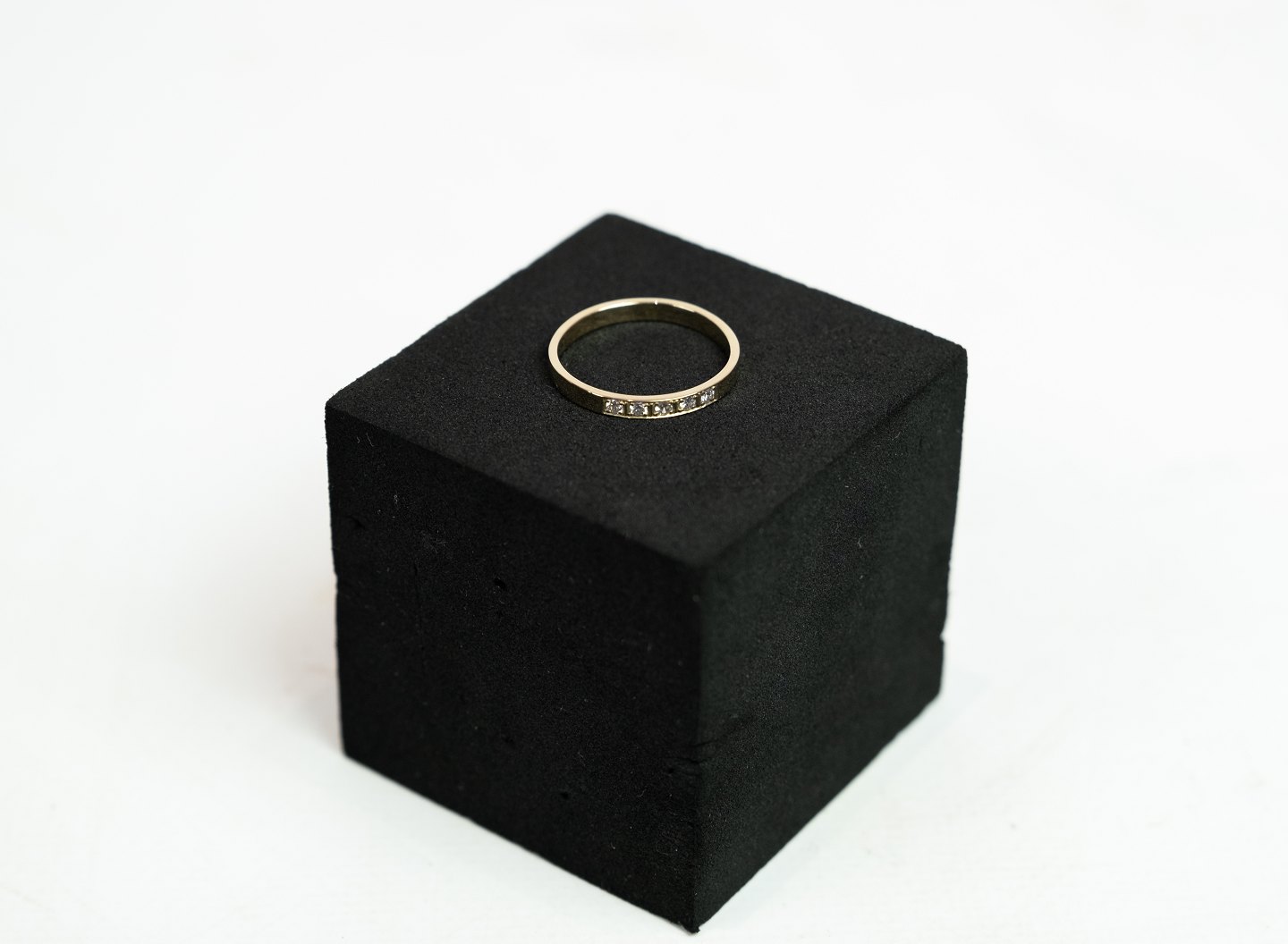 Alliance ring i 14 karat guld dekoreret med 5 små diamanter.