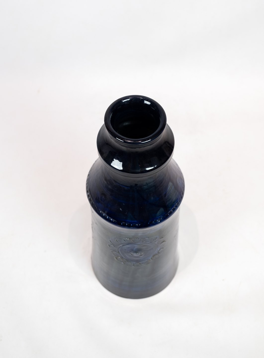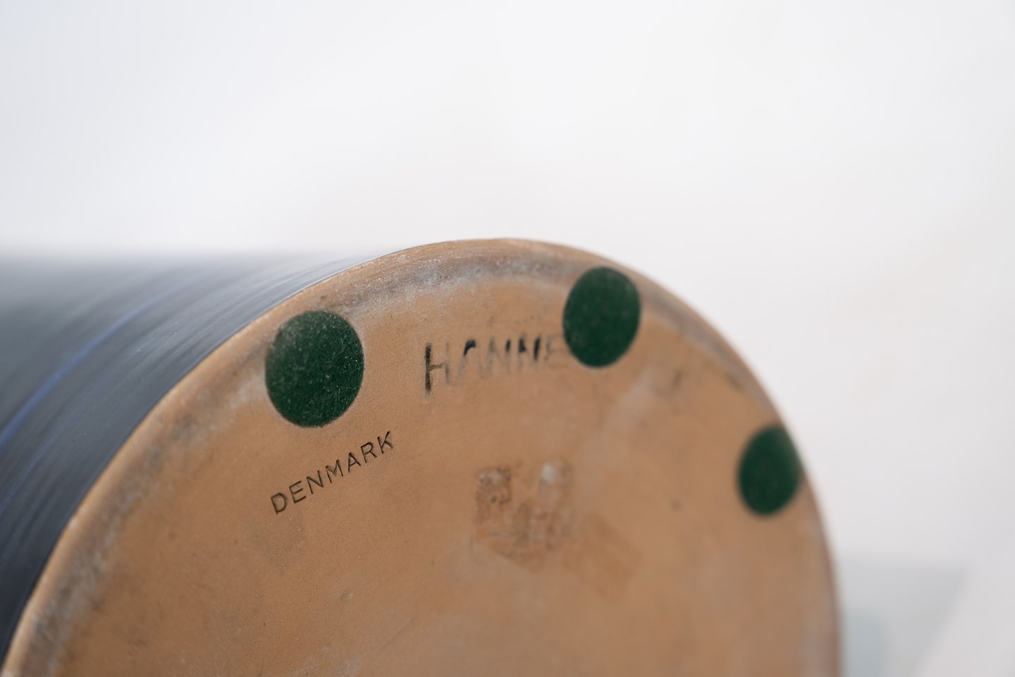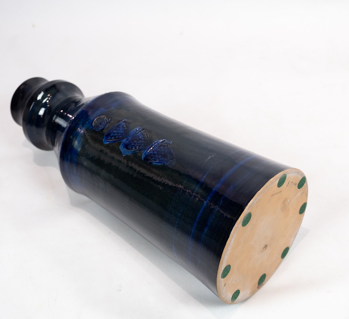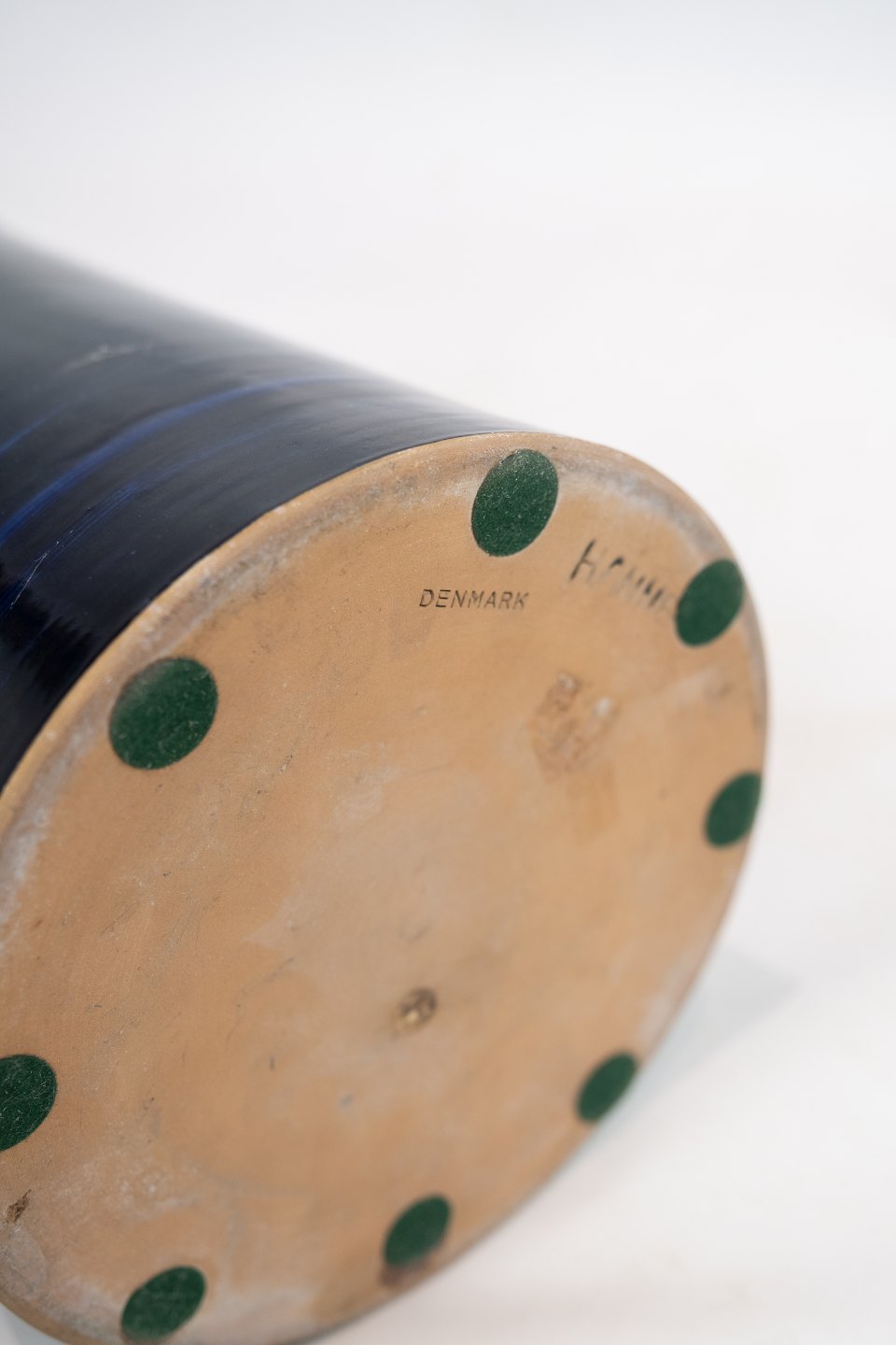 Keramik gulvvase med mørkeblå glasur af dansk design og signeret Hanne. Vasen er i flot brugt stand. H: 50 - B: 20 - D: 20