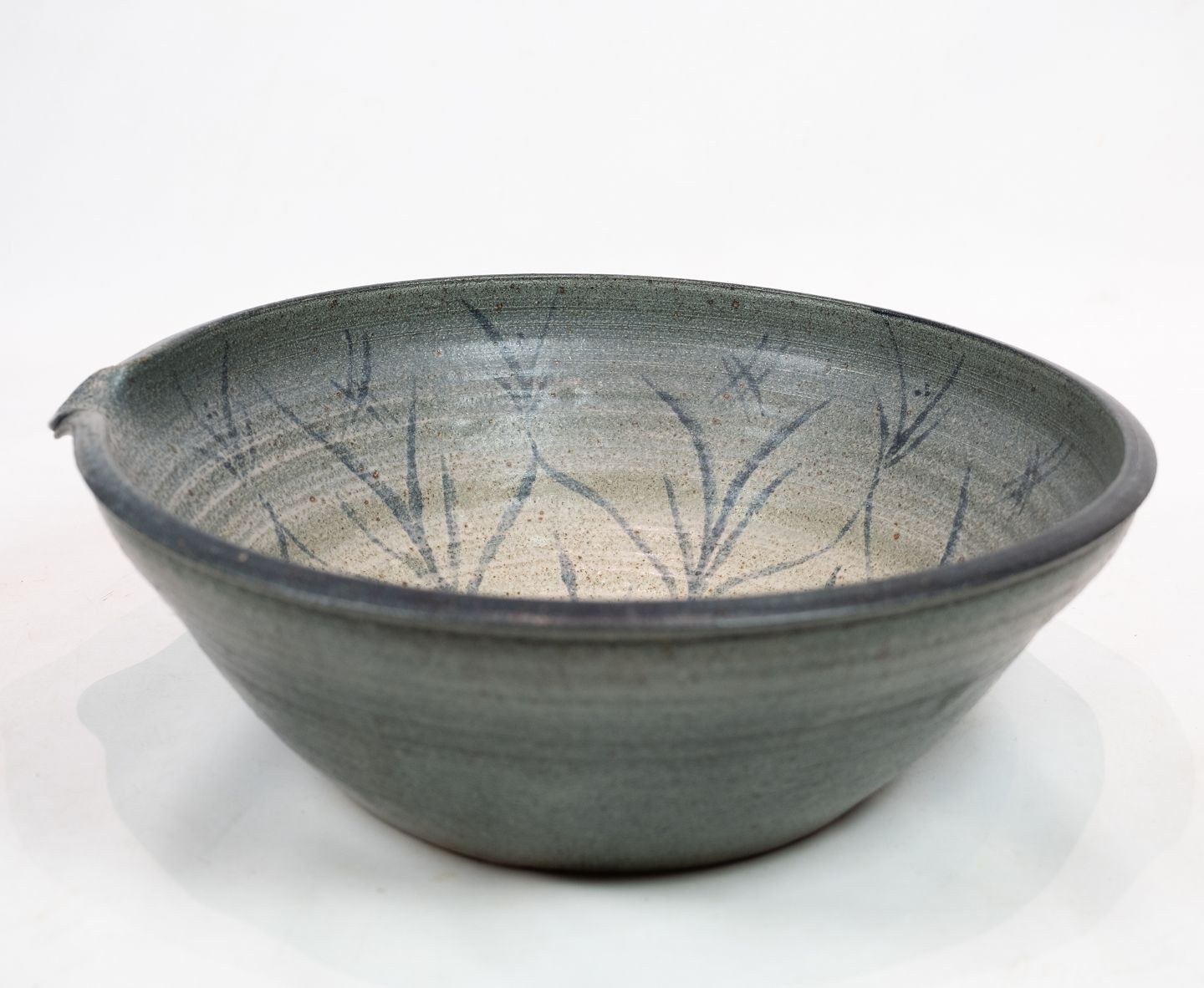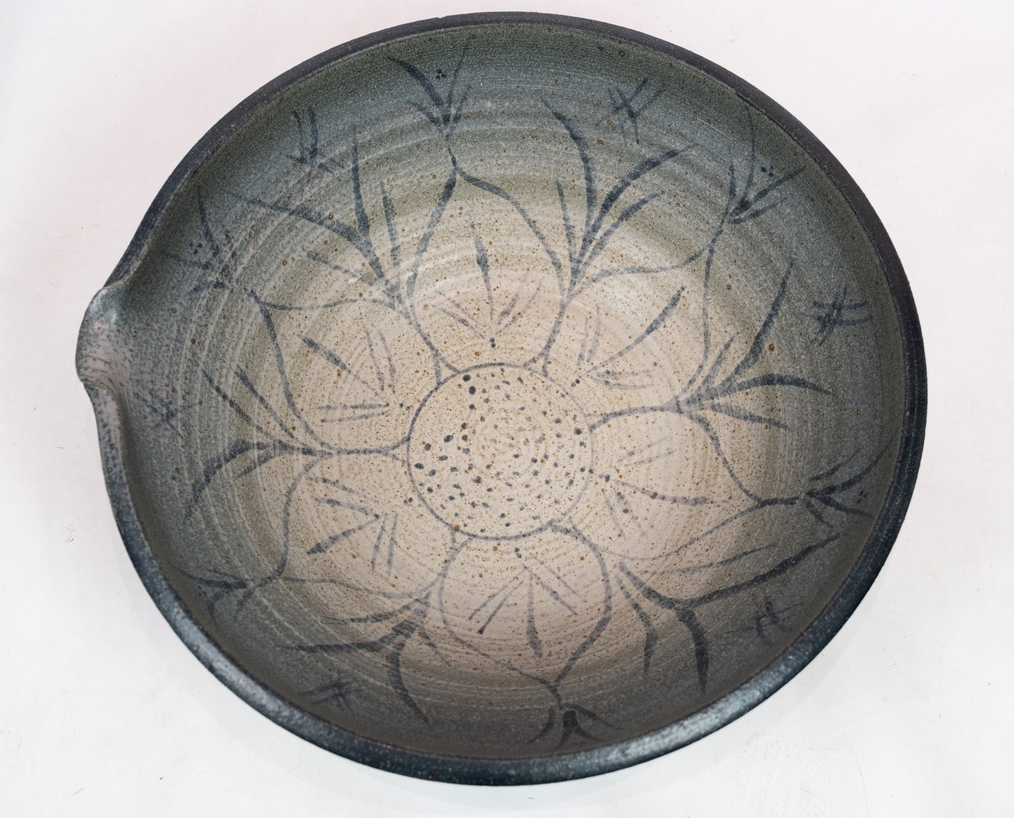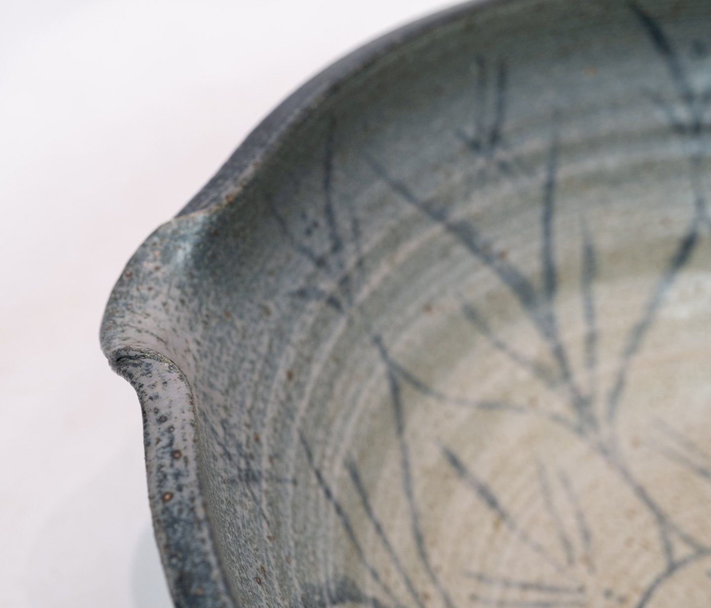 Stor grå keramik skål dekoreret med mønster indvendigt af Weiss. Skålen er i flot brugt stand.