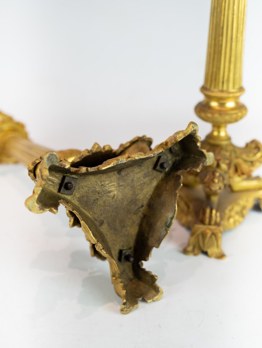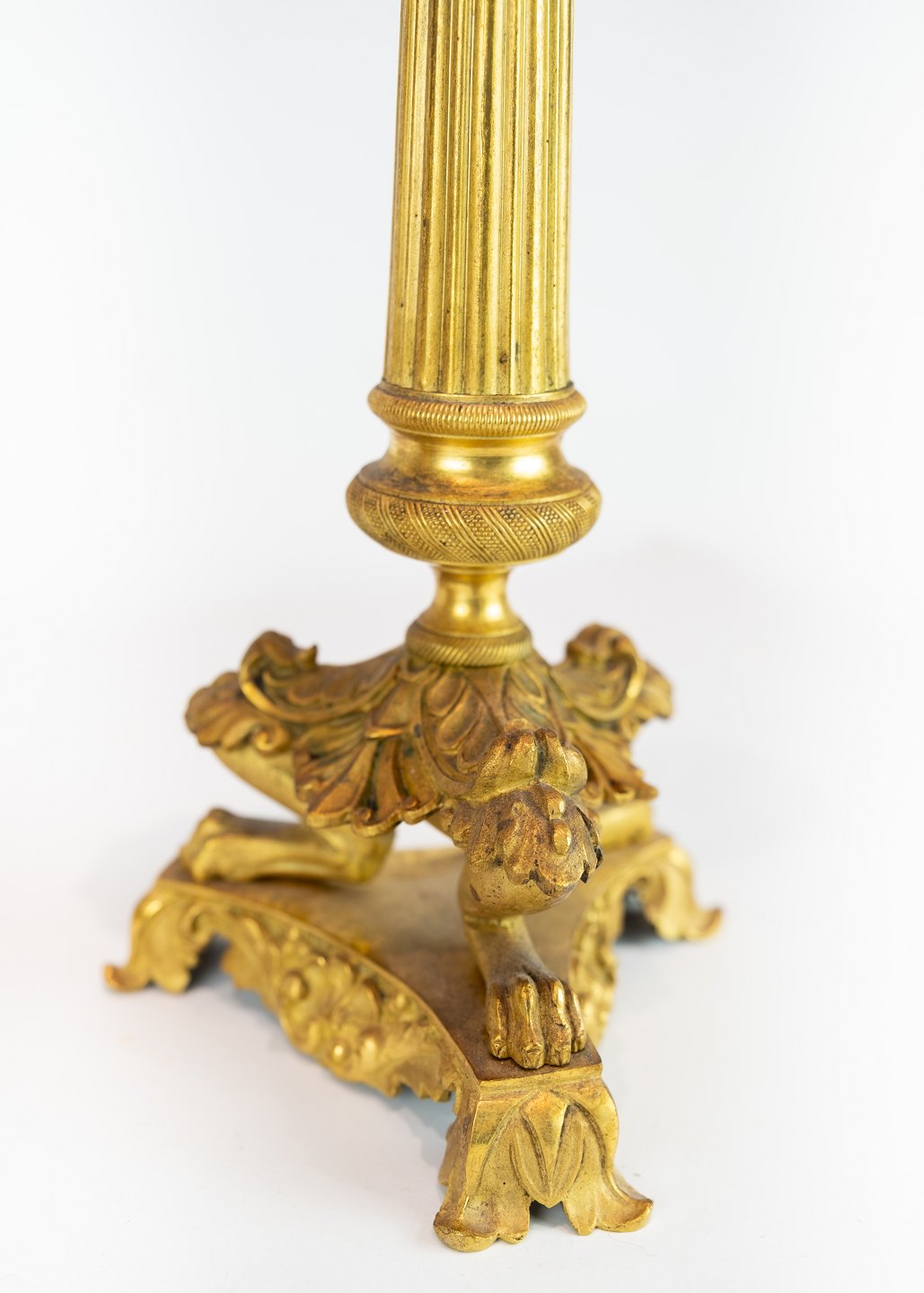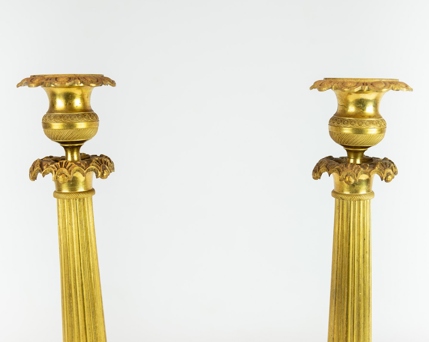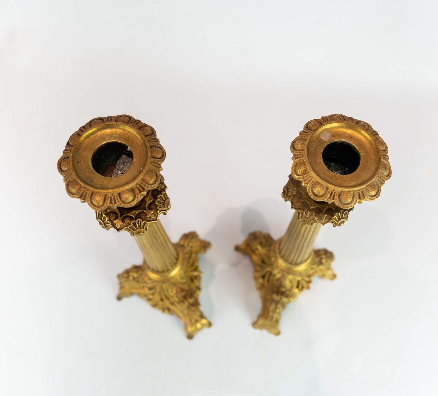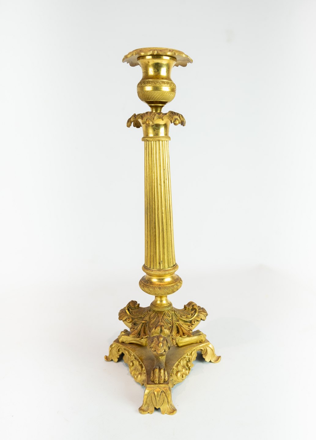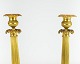 A pair of gilded bronze candlesticks from around the 1820s. The pair is in great vintage condition.