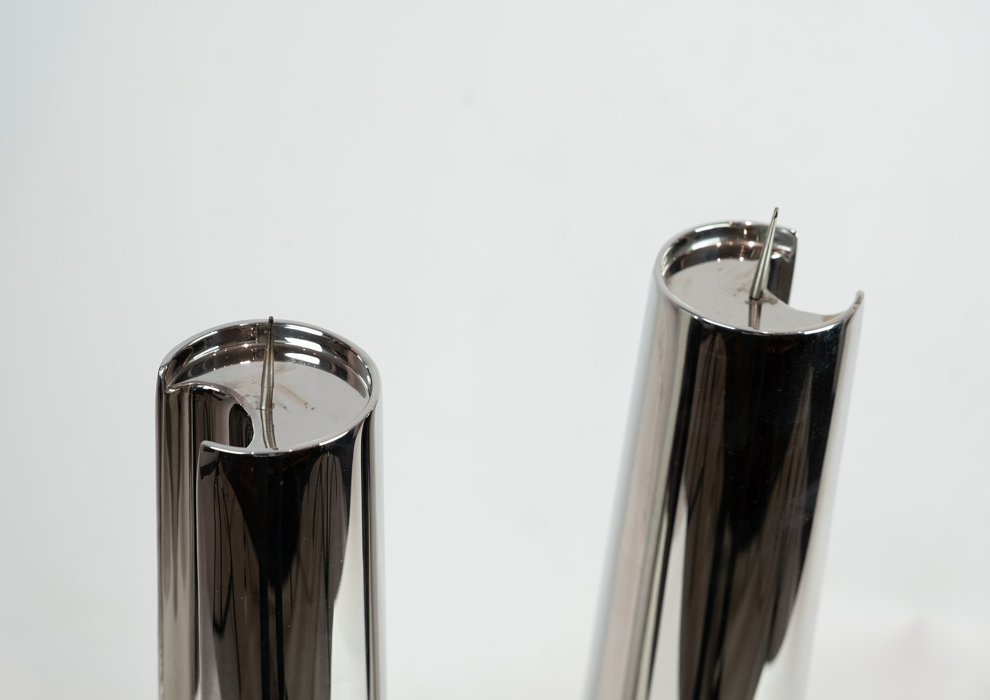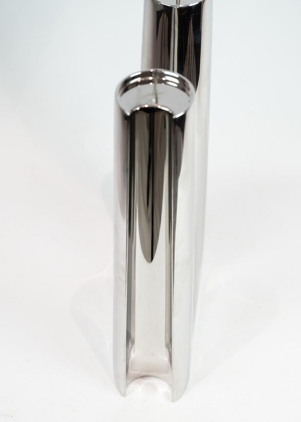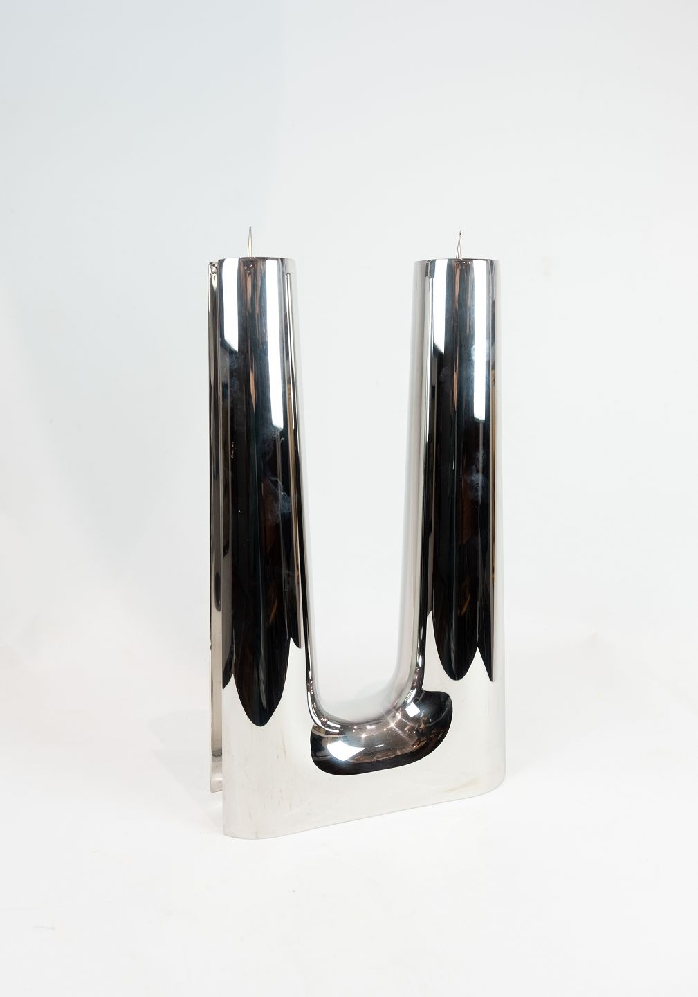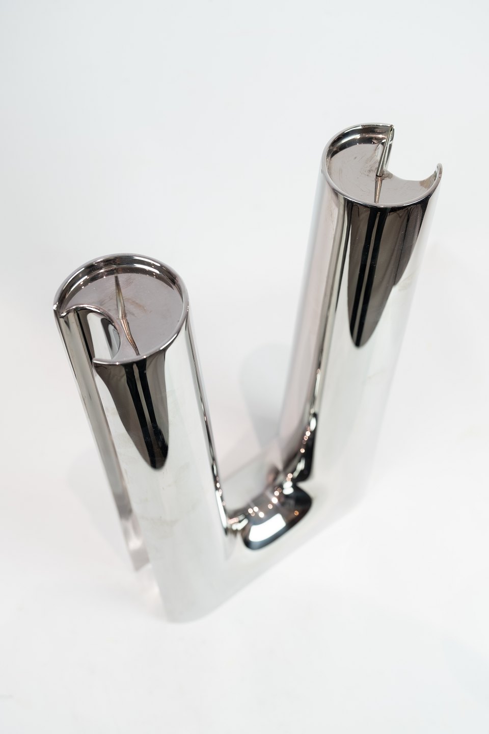 Copenhagen candlestick of stainless steel designed by Søren Georg Jensen in the 1960s for Georg Jensen.