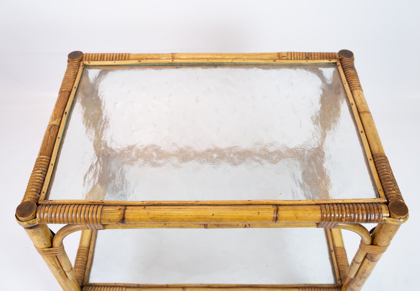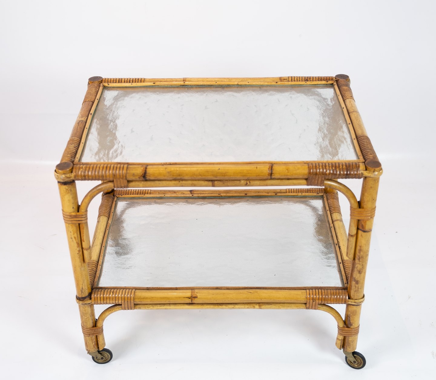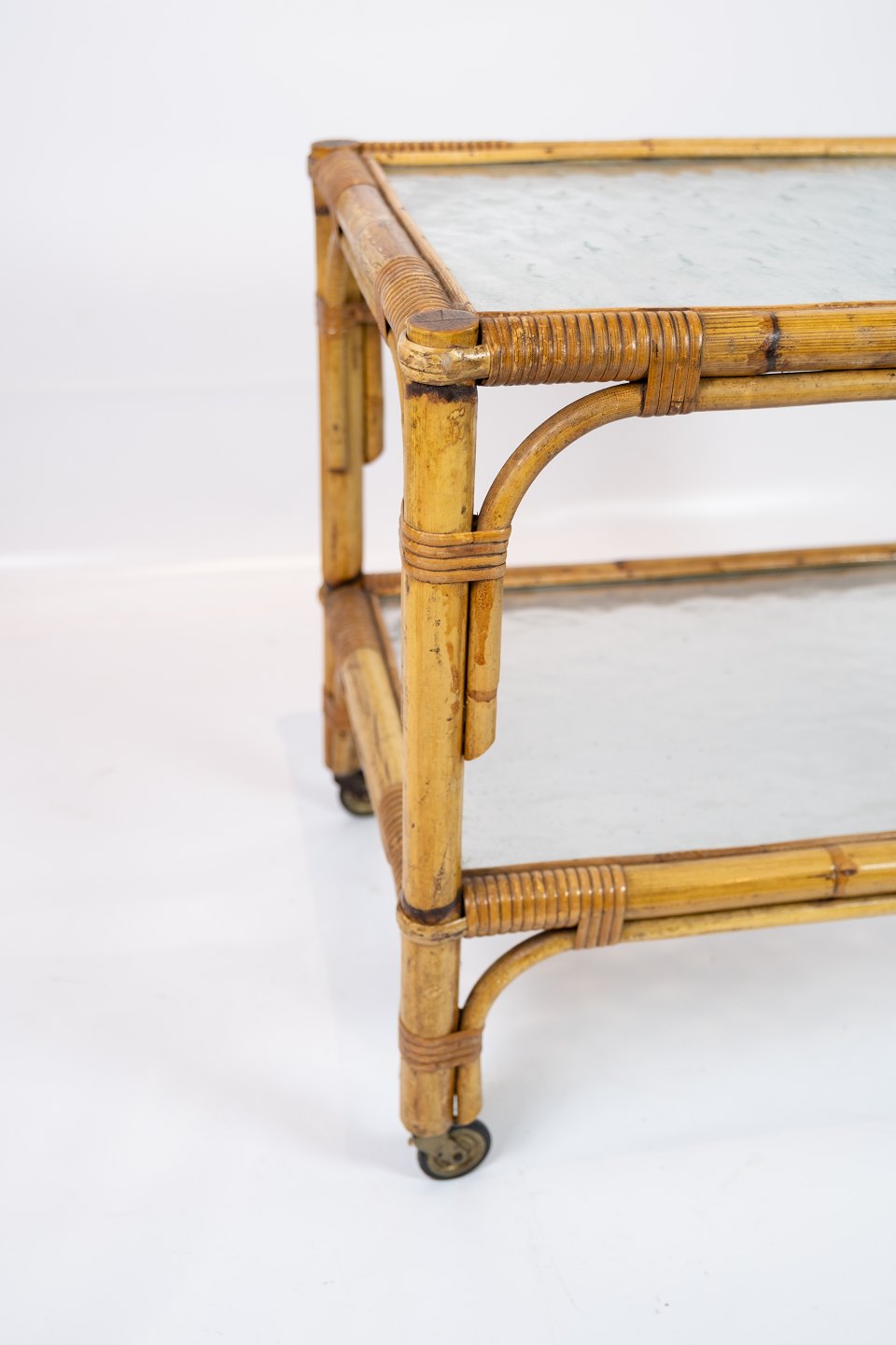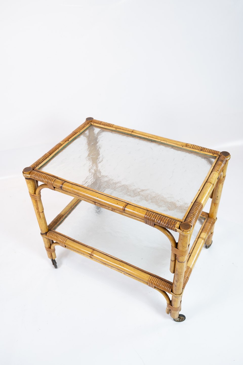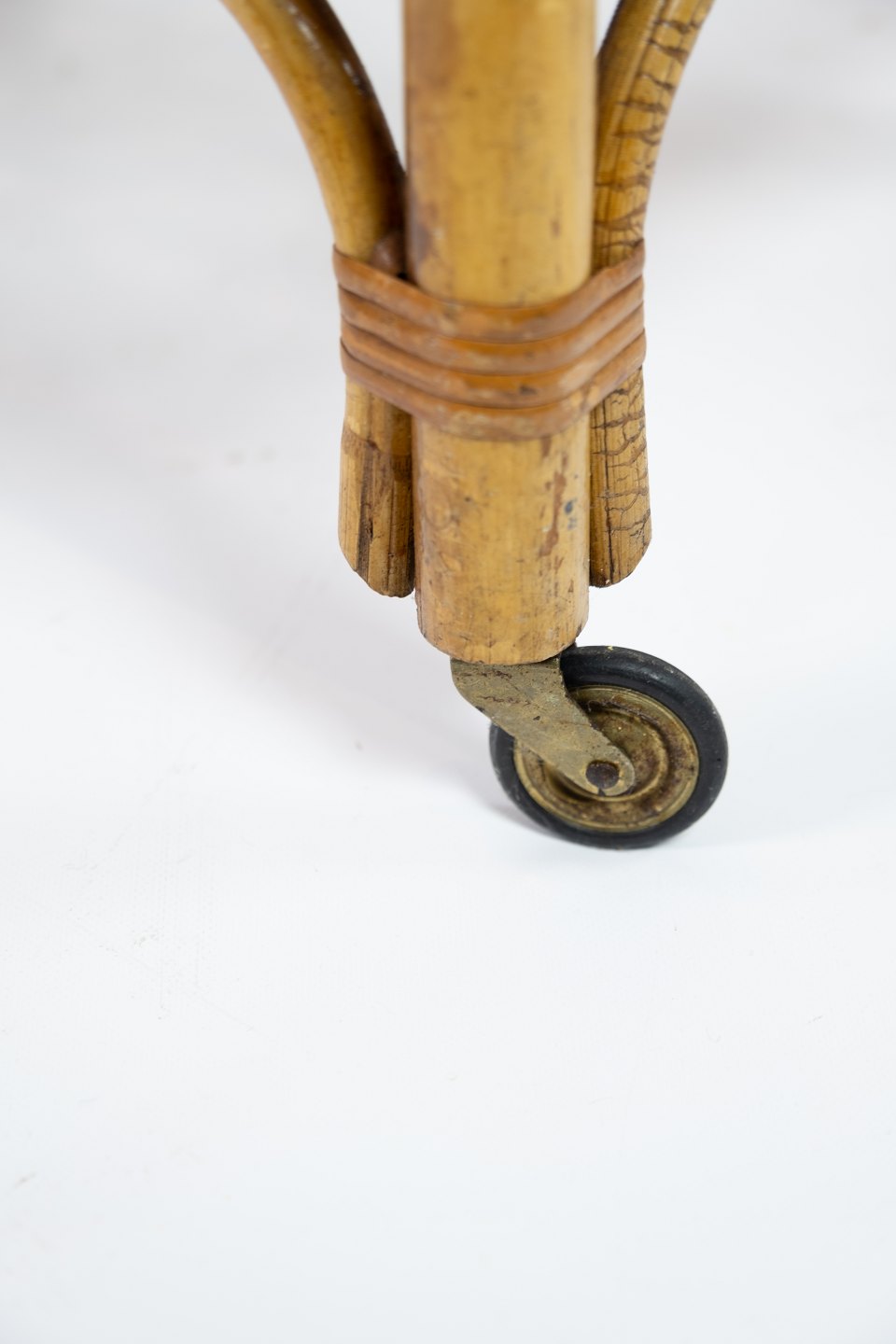 SoldTray table on wheels of Bamboo and with glass plates. The table is in great vintage condition and from the 1960s.