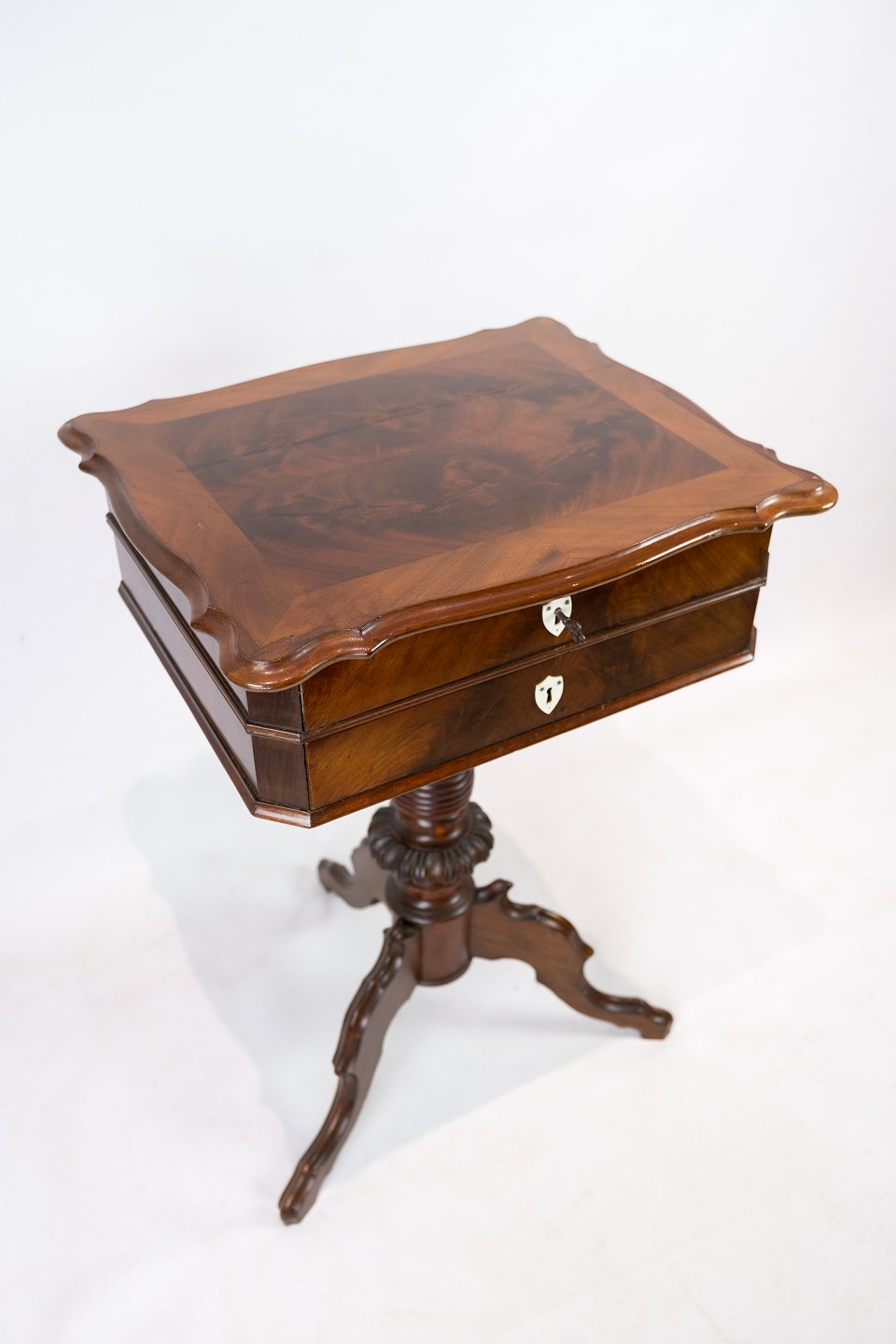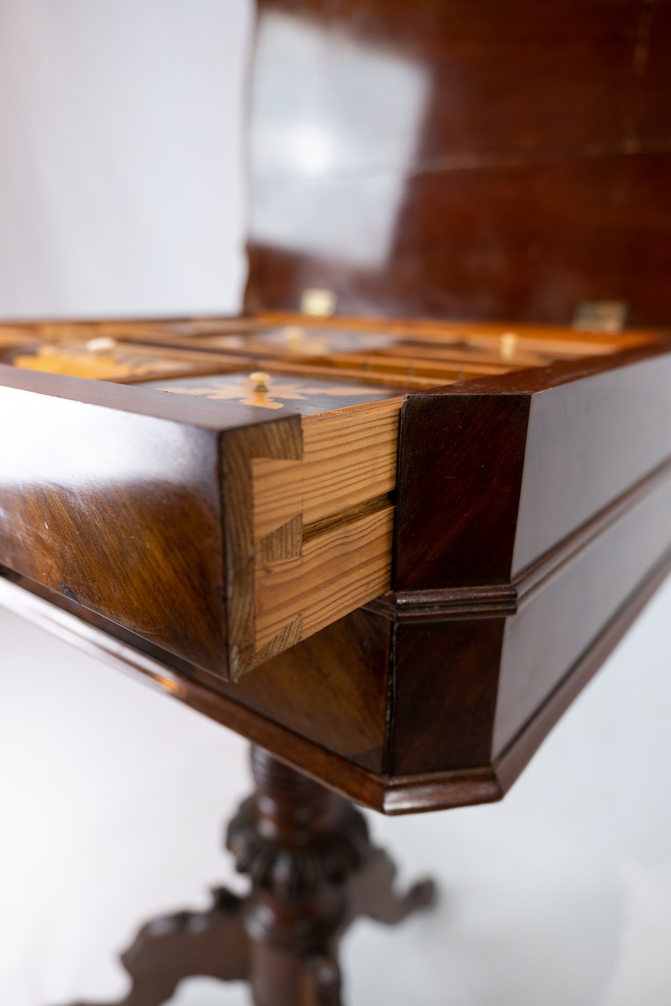 Side table of handpolished mahogany decorated with mother of pearl from around 1860.