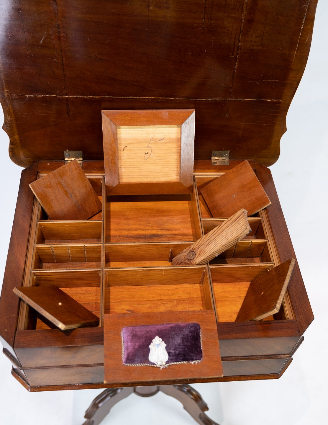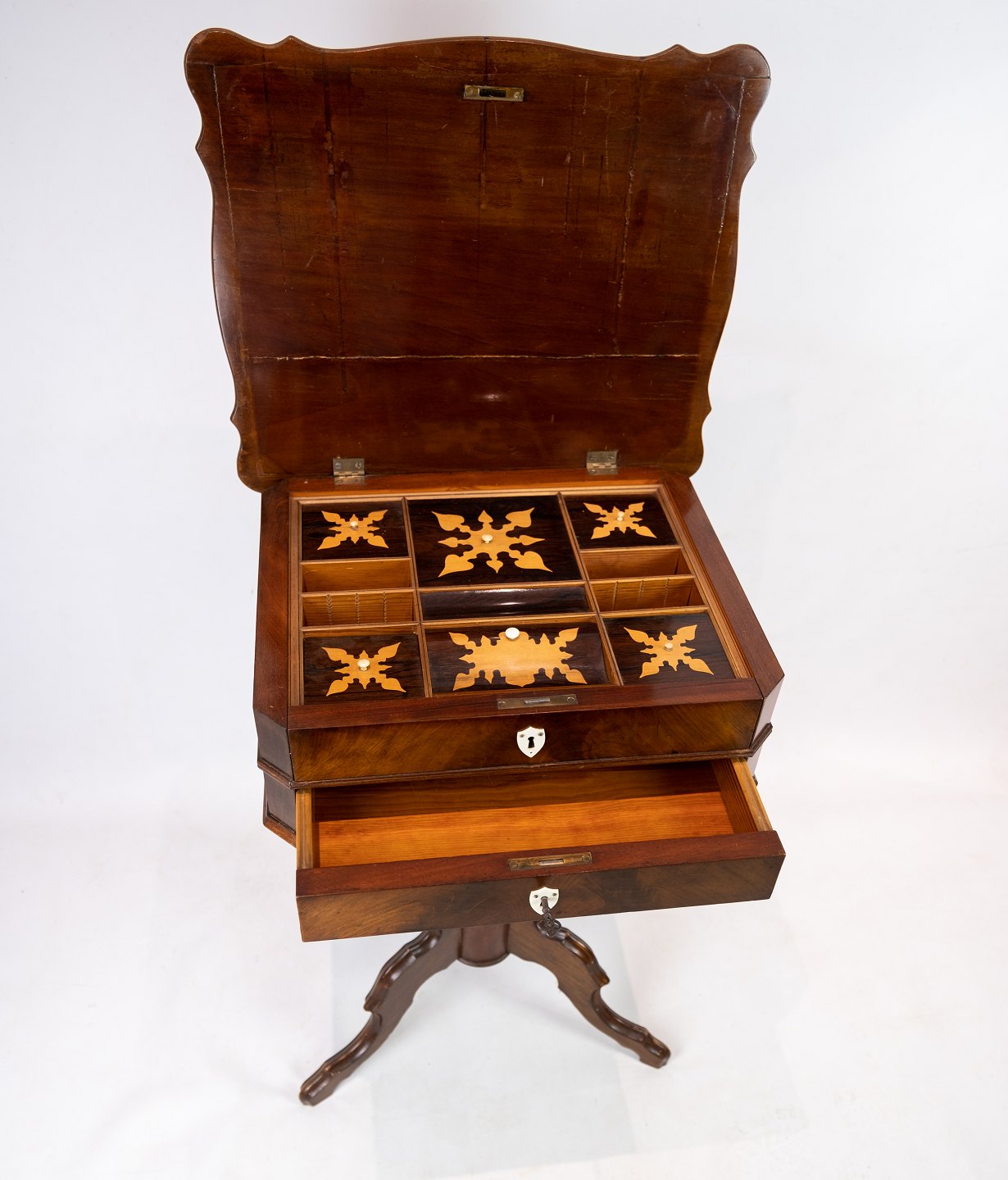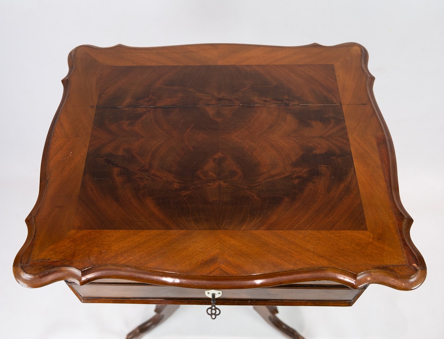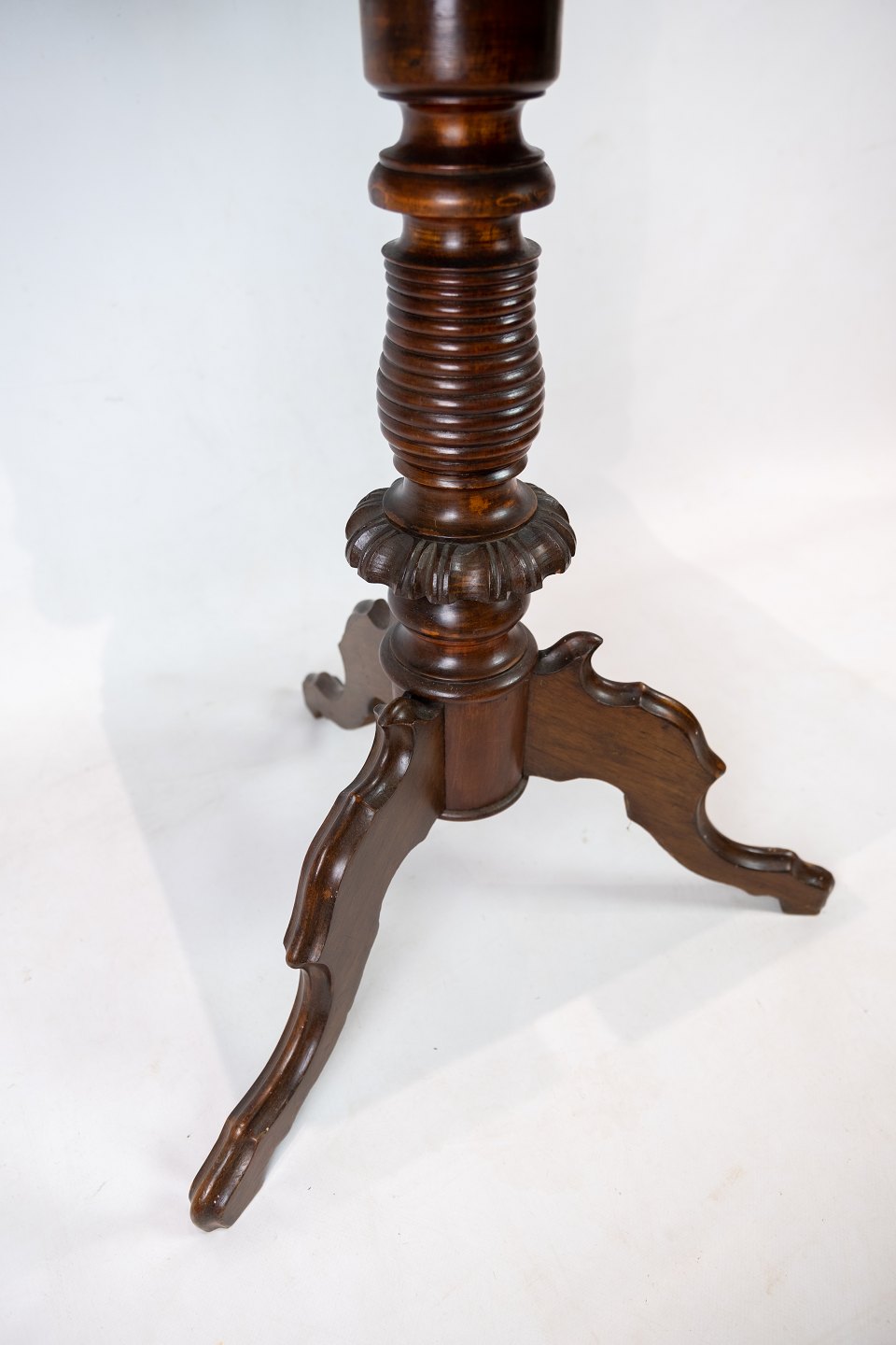 Side table of handpolished mahogany decorated with mother of pearl from around 1860. The table is in great vintage condition.