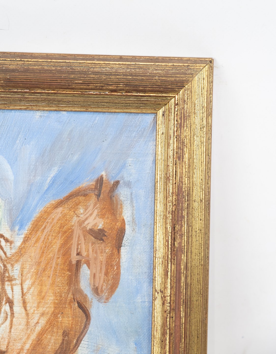 SoldOil painting with horse motif and with gilded frame.