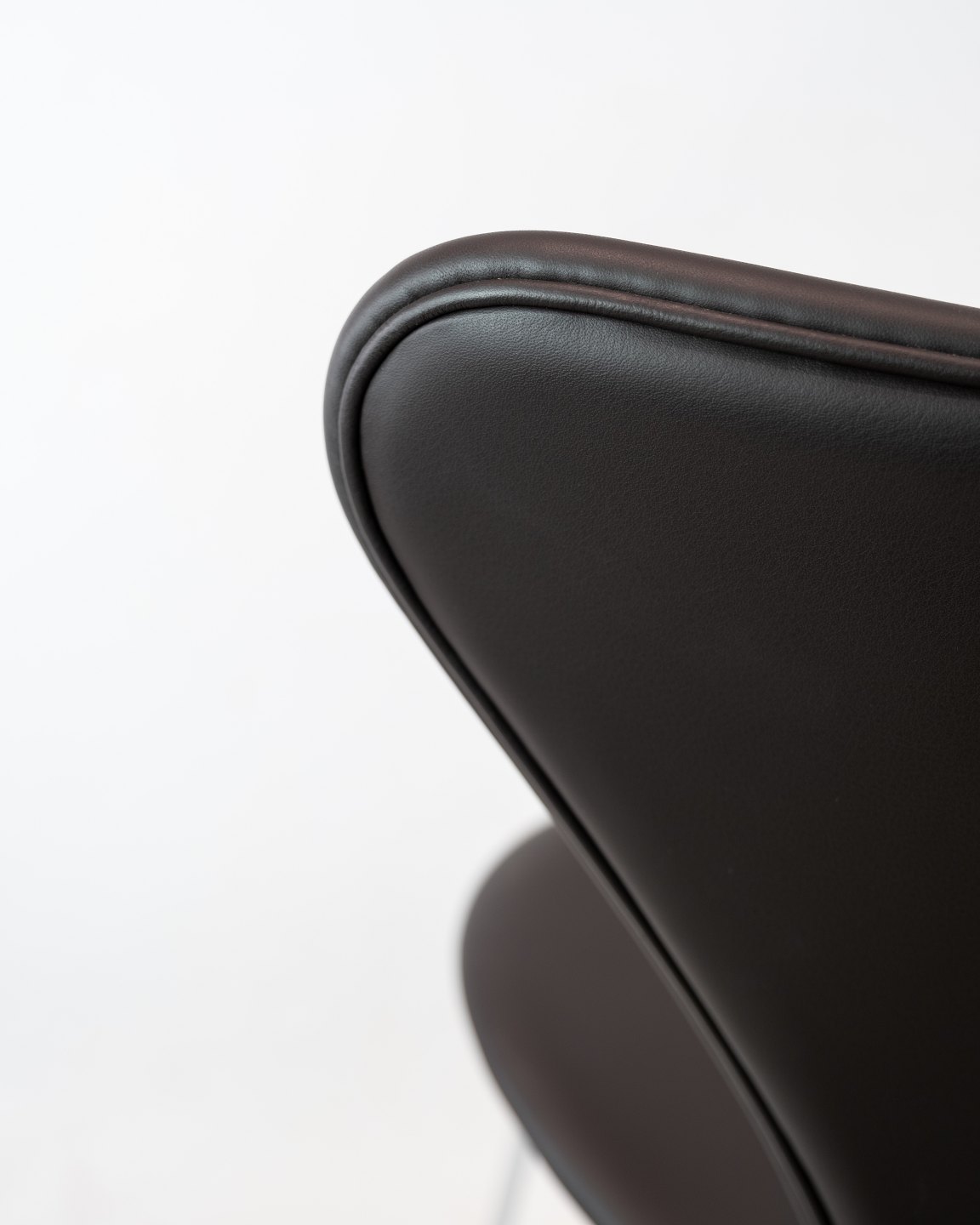 The Seven chair, also known as model 3107, designed by the legendary Arne Jacobsen and manufactured by Fritz Hansen. These iconic chairs have been newly upholstered in brown mocha Elegance leather, giving them a timeless and luxurious look.