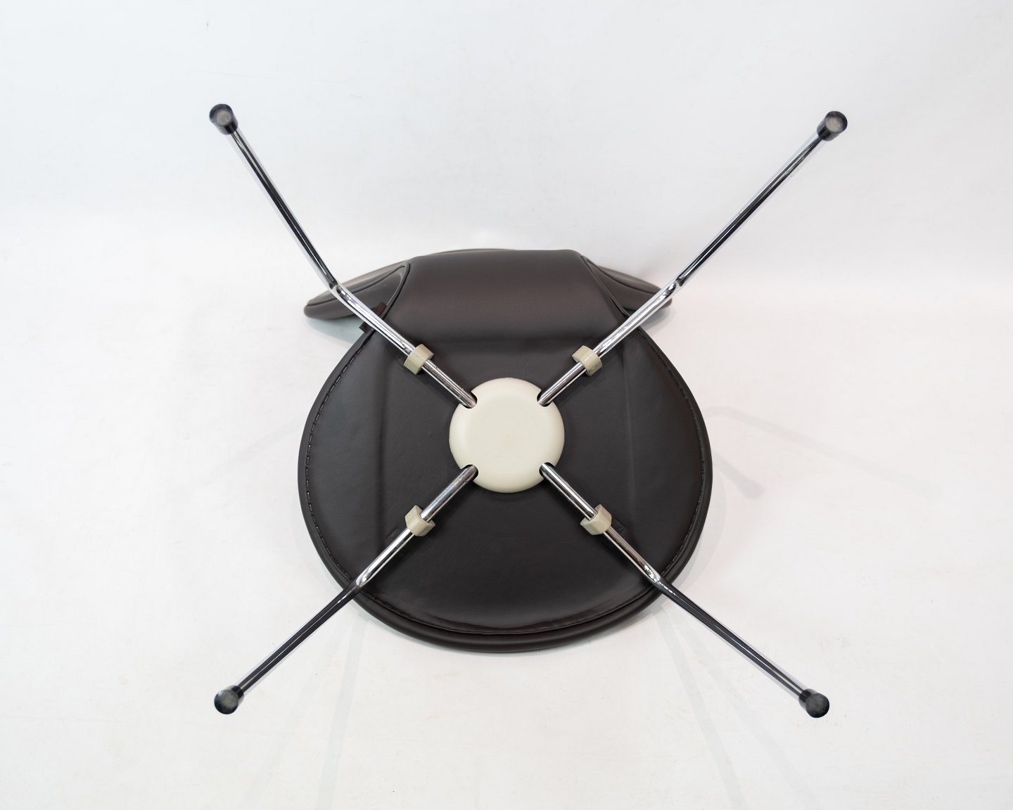 Fritz Hansen, a leading manufacturer of quality furniture, has ensured that these Syver chairs live up to the highest standards of both design and craftsmanship. The newly upholstered brown mocha Elegance leather adds a luxurious feel to these already iconic chairs.