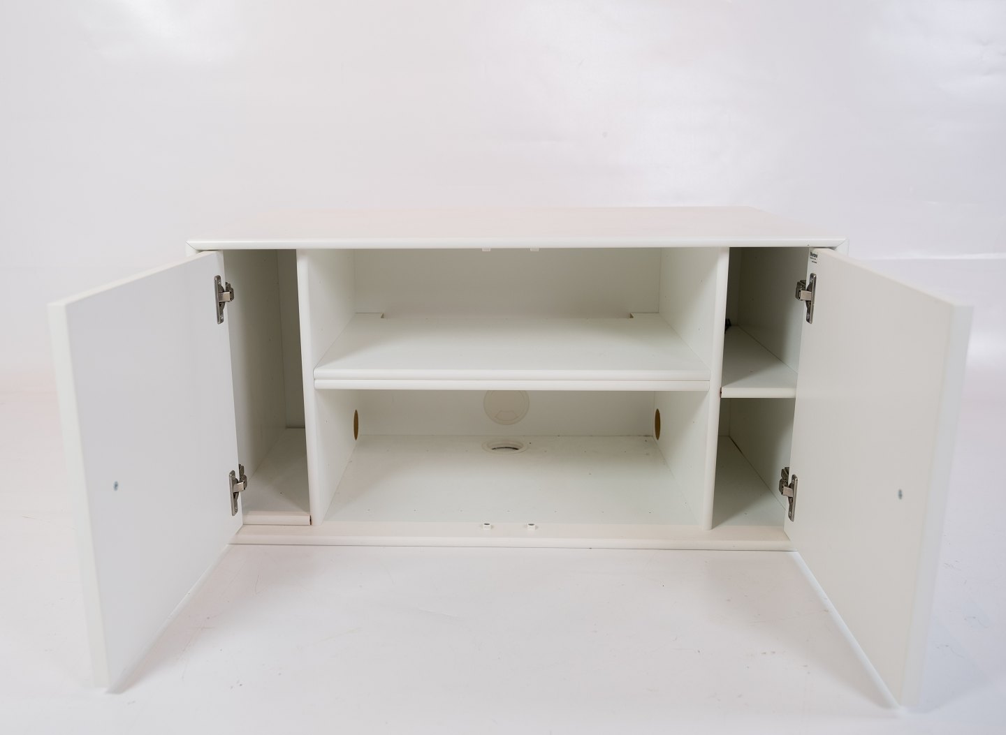 Få et elegant og praktisk tilføjelse til din indretning med dette hvide Montana modul, designet af den talentfulde designer Peter J. Lassen. Dette modul tilbyder to rummelige rum, der giver rigelig opbevaringsplads til dine ejendele.