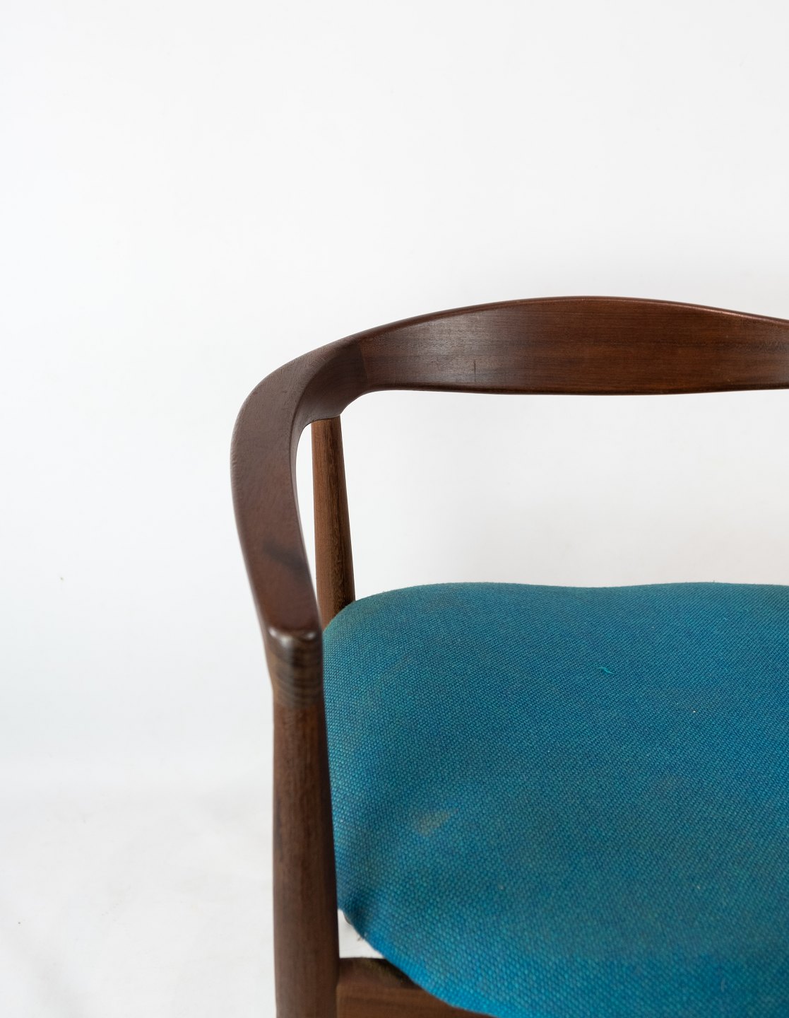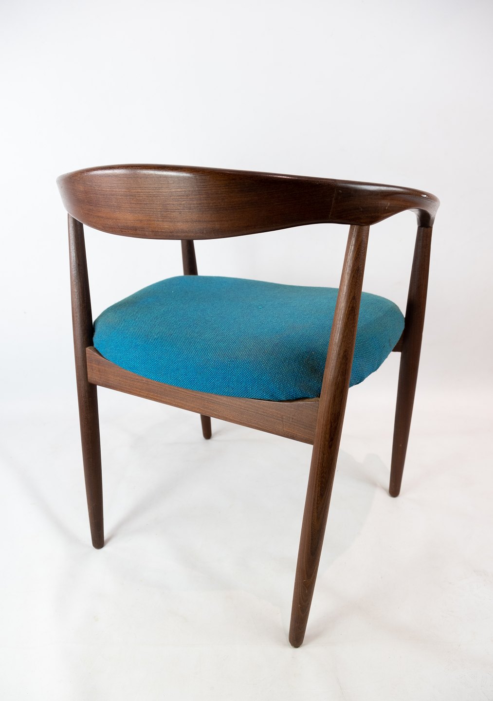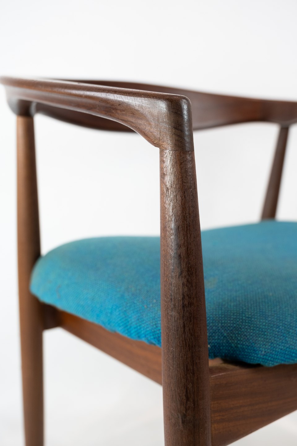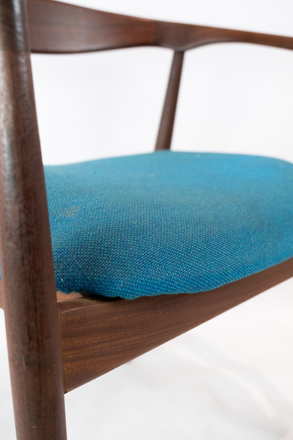 SoldArmchair in rosewood, model Troja, upholstered with blue fabric designed by Kai Kristiansen from the 1960s.The chair is in great vintage condition.