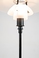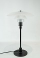 PH 3/2 bordlampe med sort stel og mat glas skærme, designet af Poul Henningsen og fremstillet hos Louis Poulsen. Lampen er i flot brugt stand.